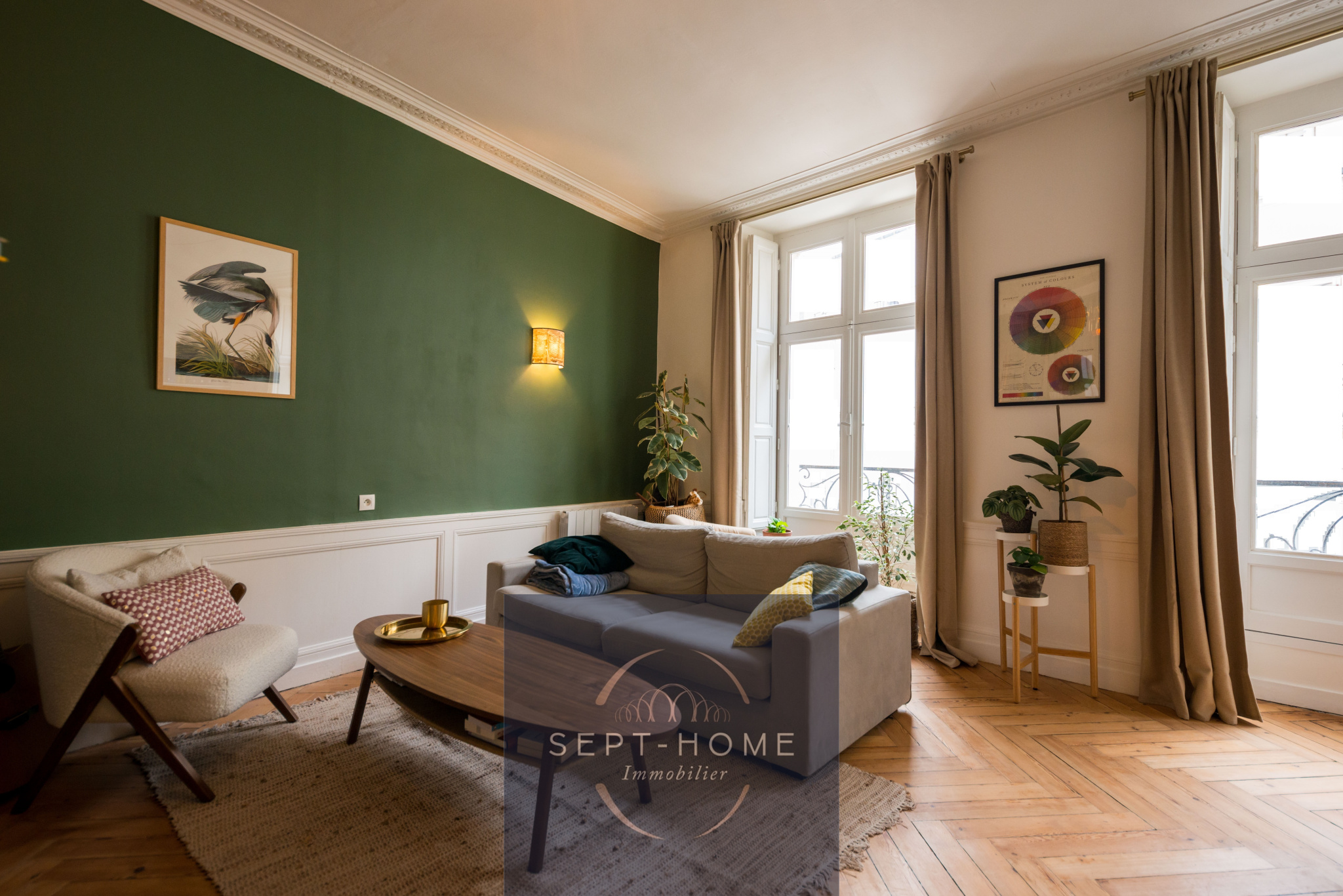 ... dégagement avec placard, deux chambres sur parquet, une salle de bains, un WC indépendant.