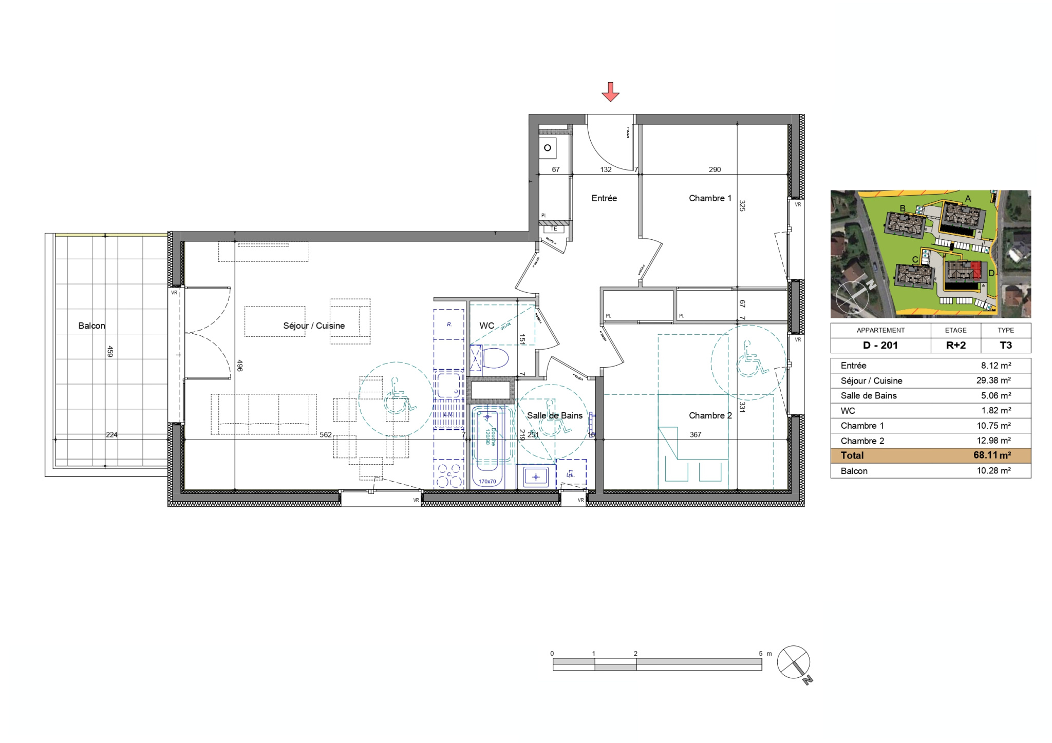 ...D'une superficie habitable de 69 m², il se compose d'une pièce de vie avec cuisine aménagée et...