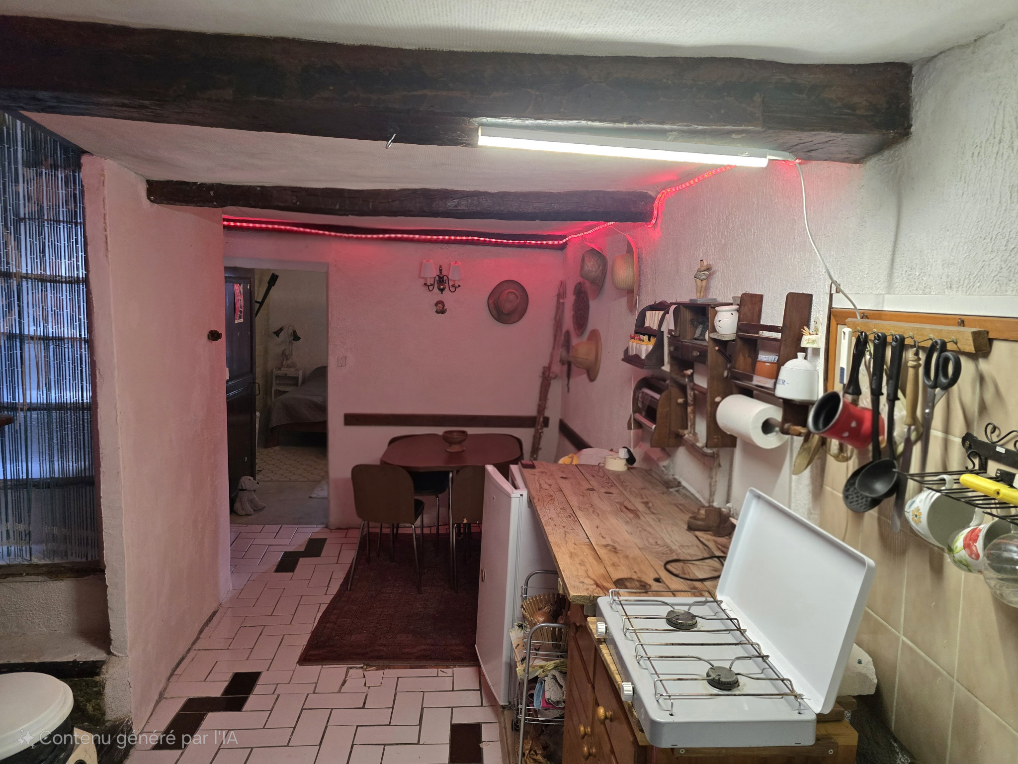 Appartement deux pièces avec travaux à prévoir, composé de: Cuisine ouverte sur séjour , chambre...
