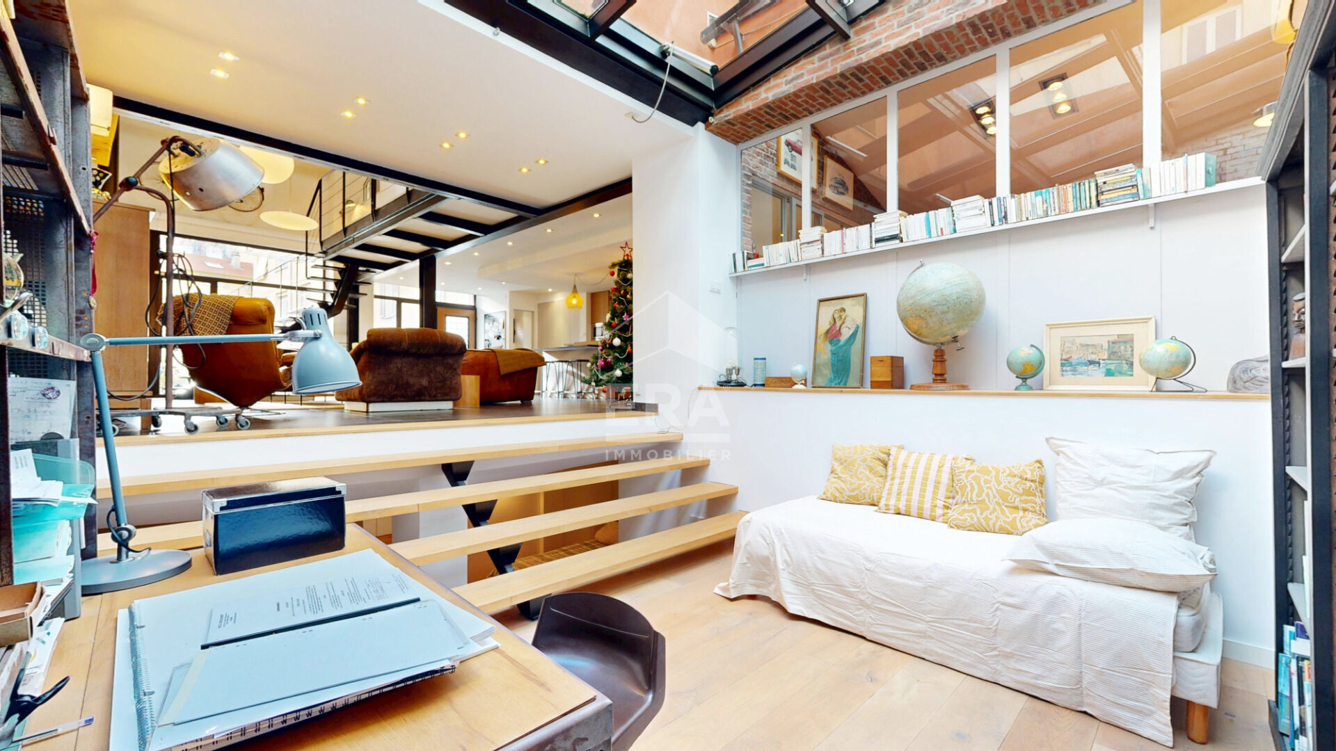 ...Ce bien atypique se compose d'un double séjour spacieux avec sa cuisine américaine entièrement...