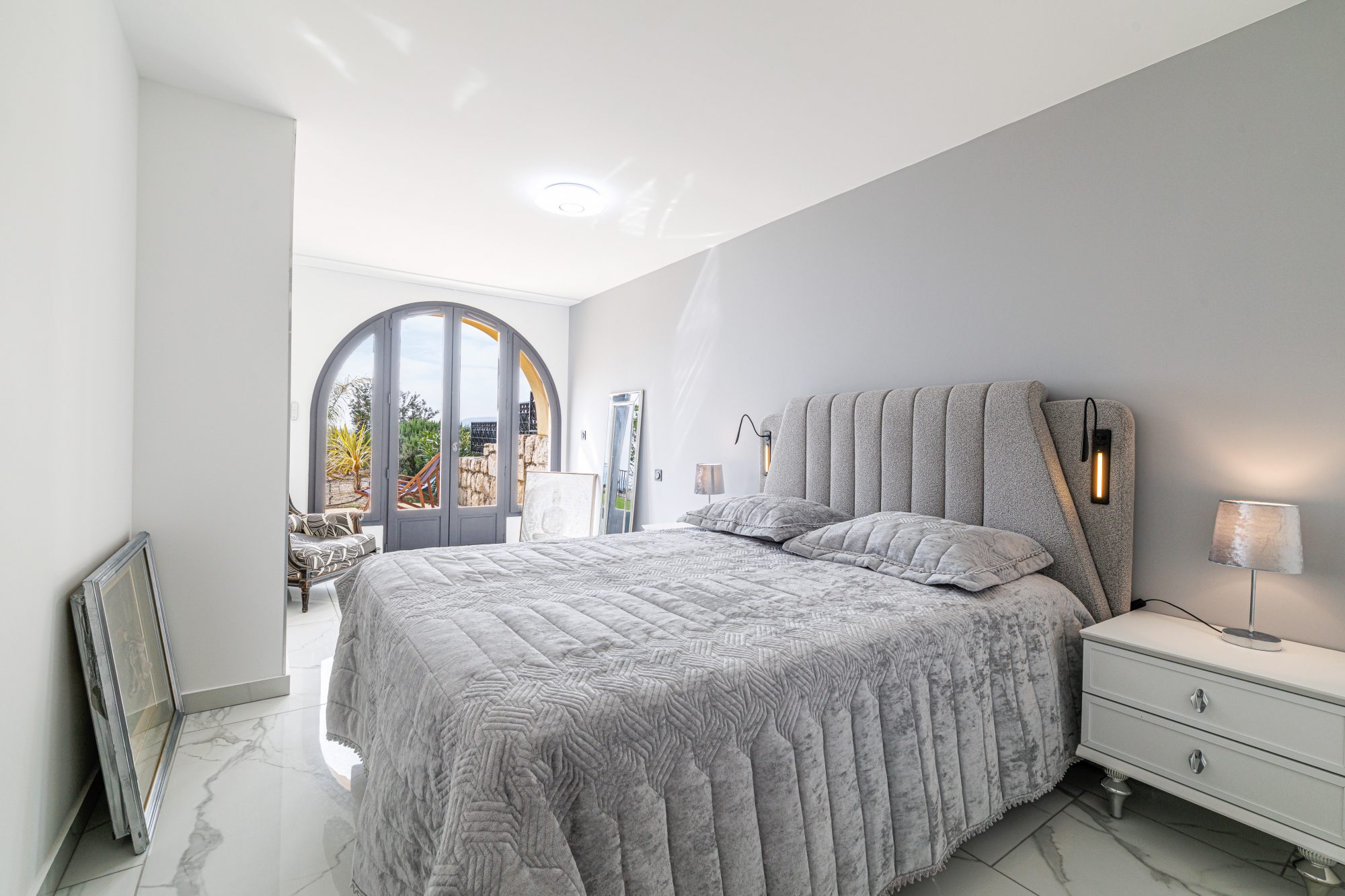 ... balcon avec une vue panoramique de Saint-Jean-Cap-Ferrat à la Darse. Chambre principale avec lit...