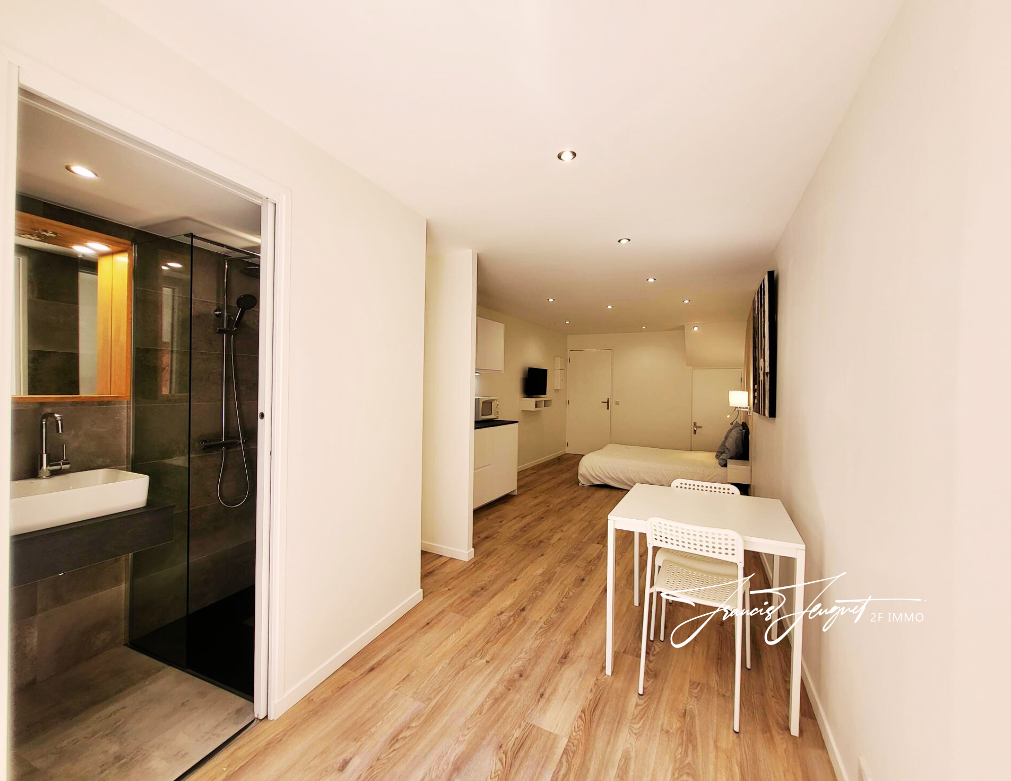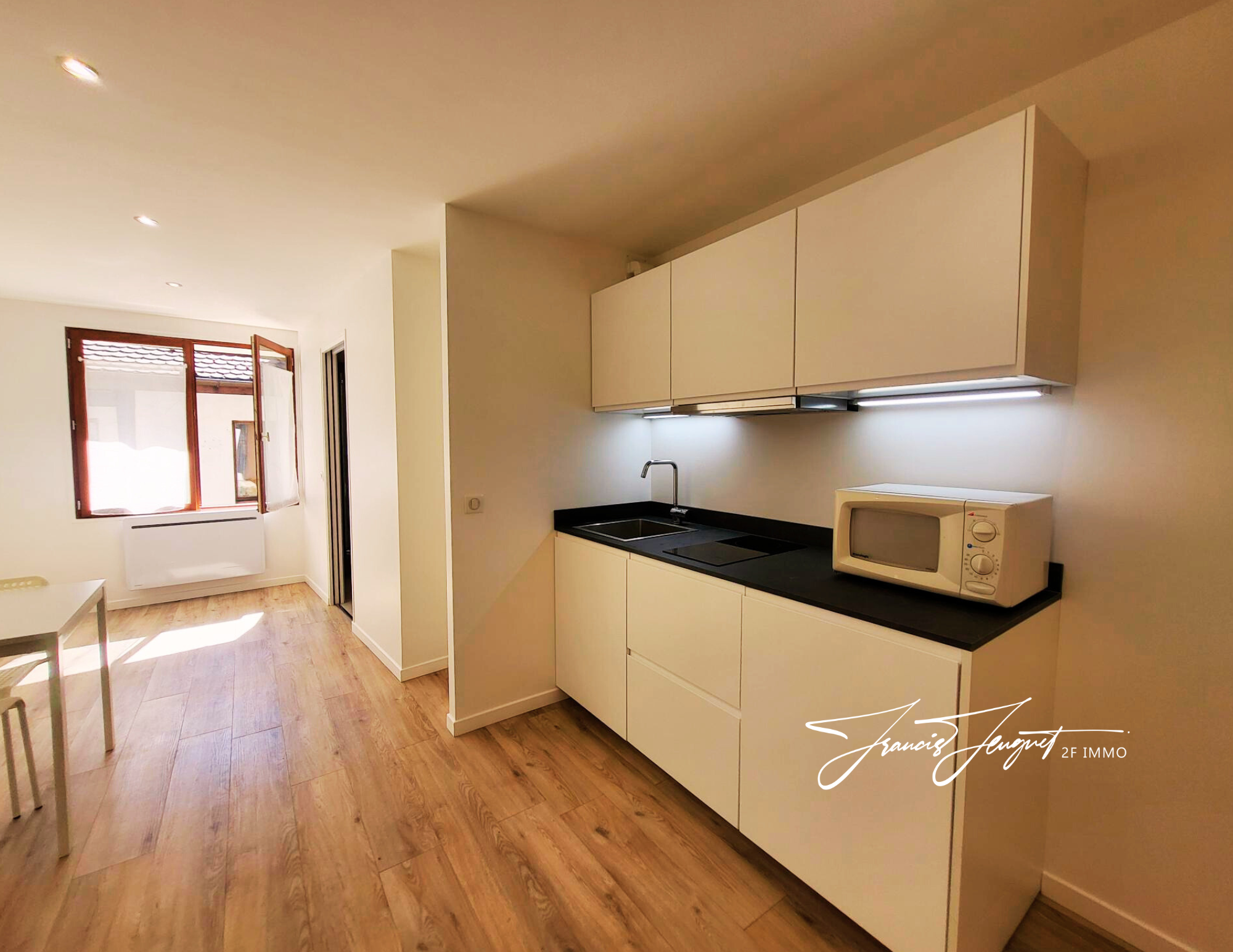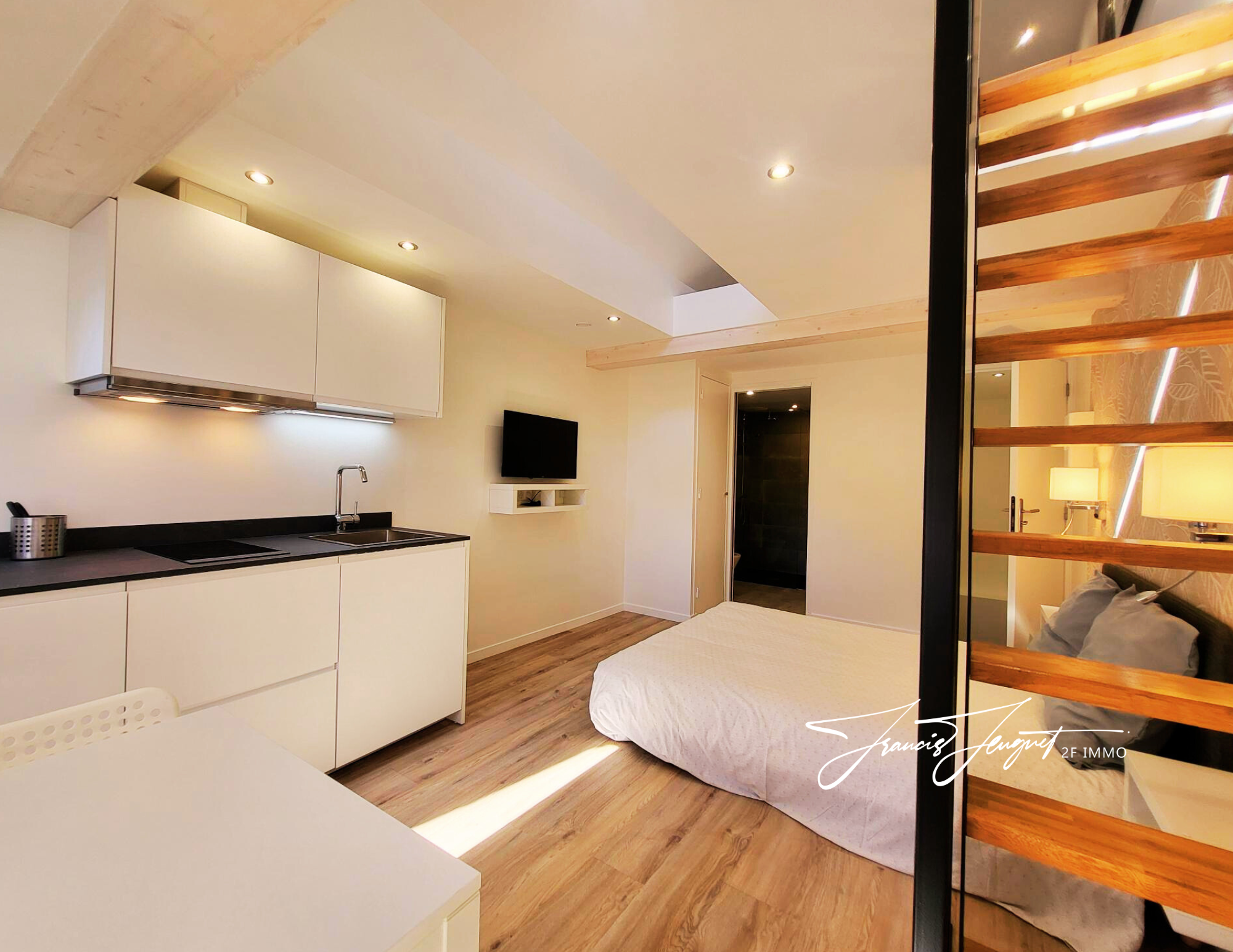 ... avec mezzanine, une cuisine équipée et une salle d'eau avec WC. Parfait pour vivre à deux ou louer ...