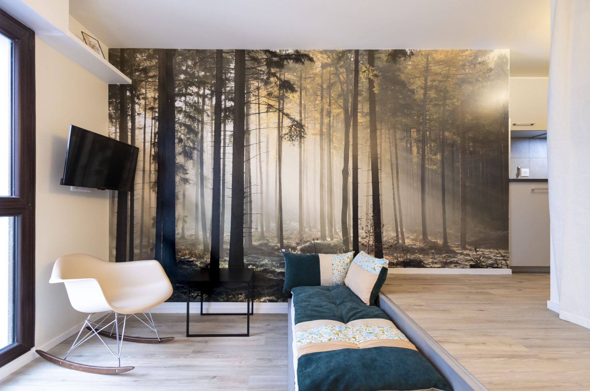 ...Il comprend un espace nuit modulable, une kitchenette équipée et une salle d'eau privative...