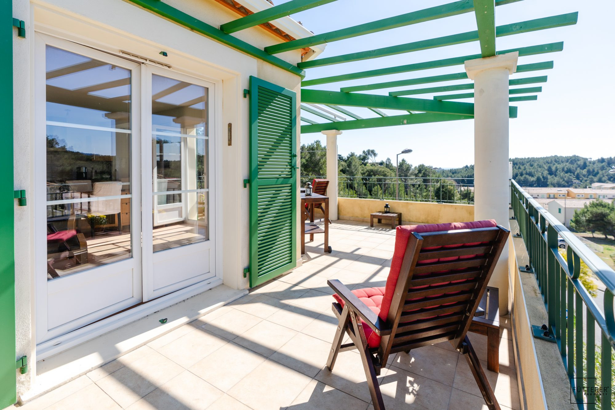 ... à la terrasse, cuisine équipée et meublée avec buanderie, couloir desservant une première chambre a...