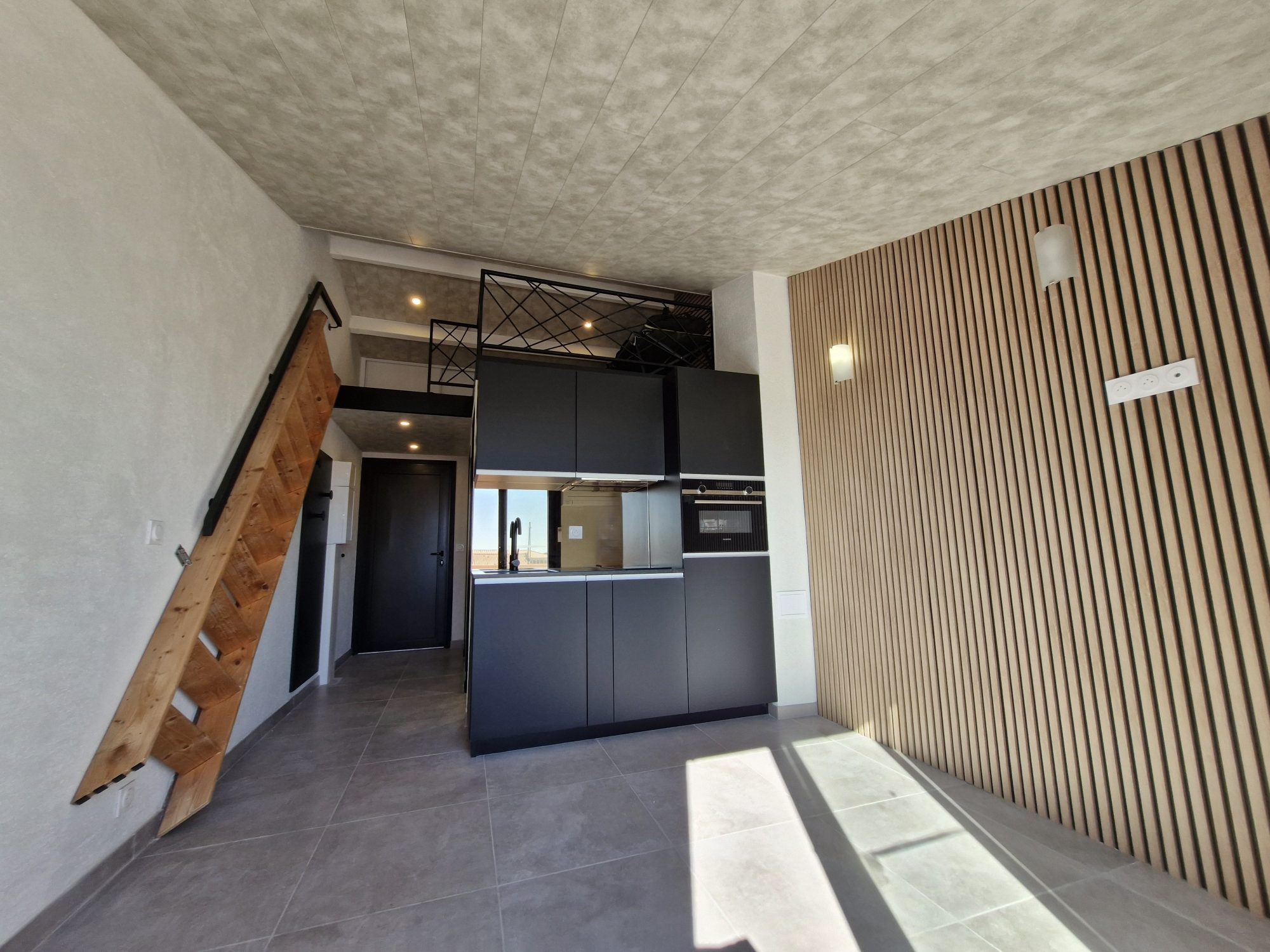 ... charmant Studio mezzanine meublé de 31m2 de surface au sol totale. Il comprend : Rdc : Hall d'entré...
