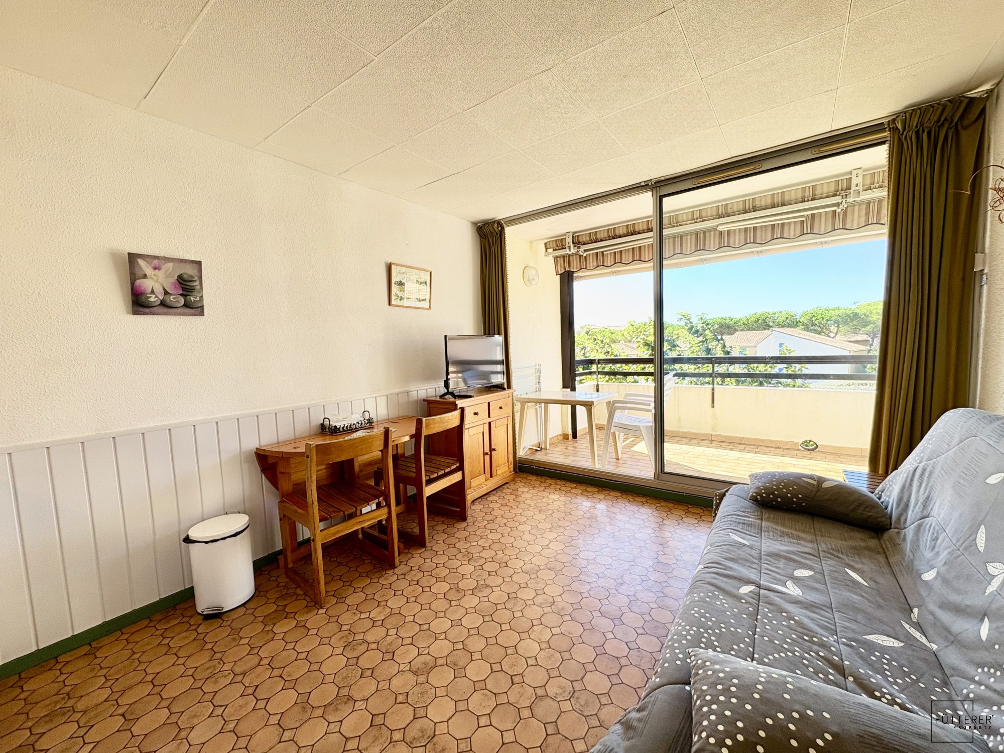 ... F2 avec balcon et vue mer à Gruissan climatisé Découvrez ce superbe appartement F2 de 32 m2, situé...