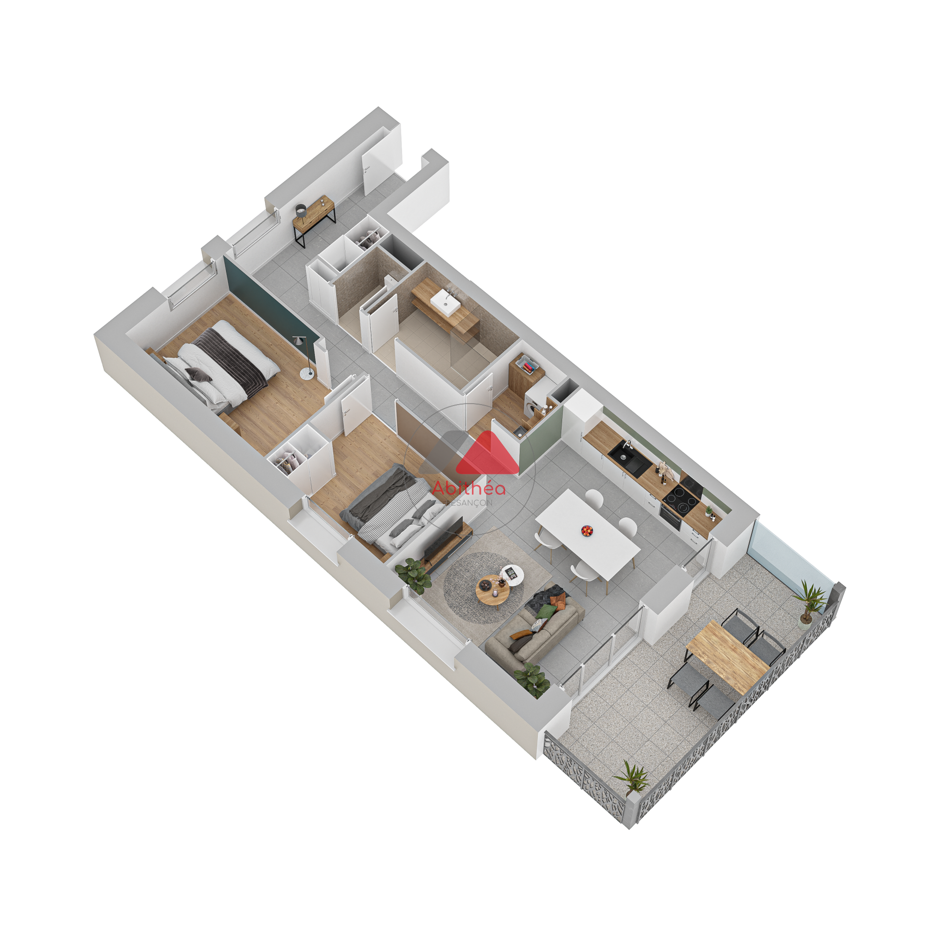 ...L'espace de vie est exposé Sud et profite d'un accès direct sur une grande terrasse de 15 m2...