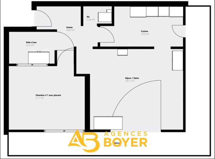 ...Il se compose d'une entrée, d'un séjour lumineux avec cuisine aménagée, ouvrant sur une grande...