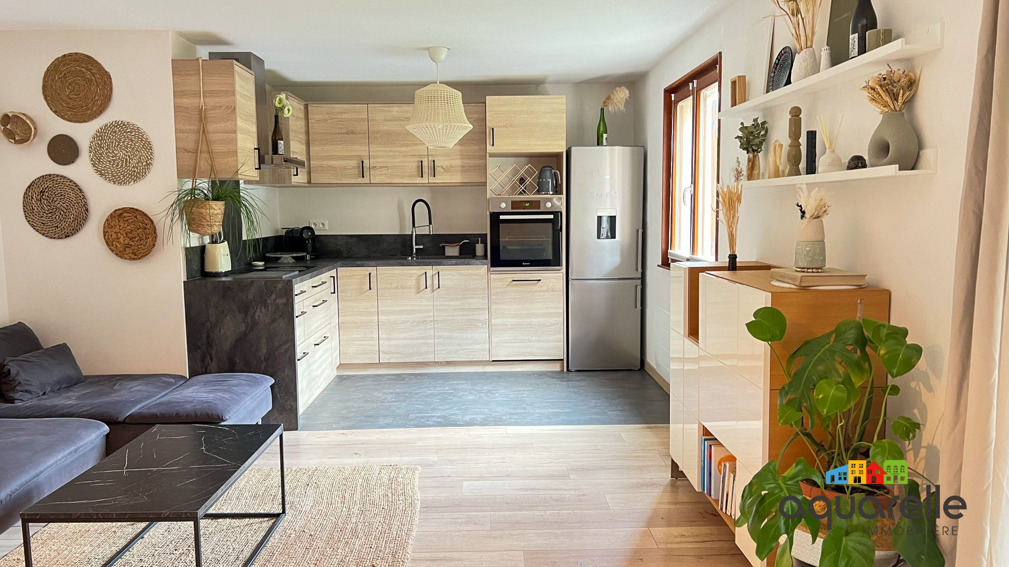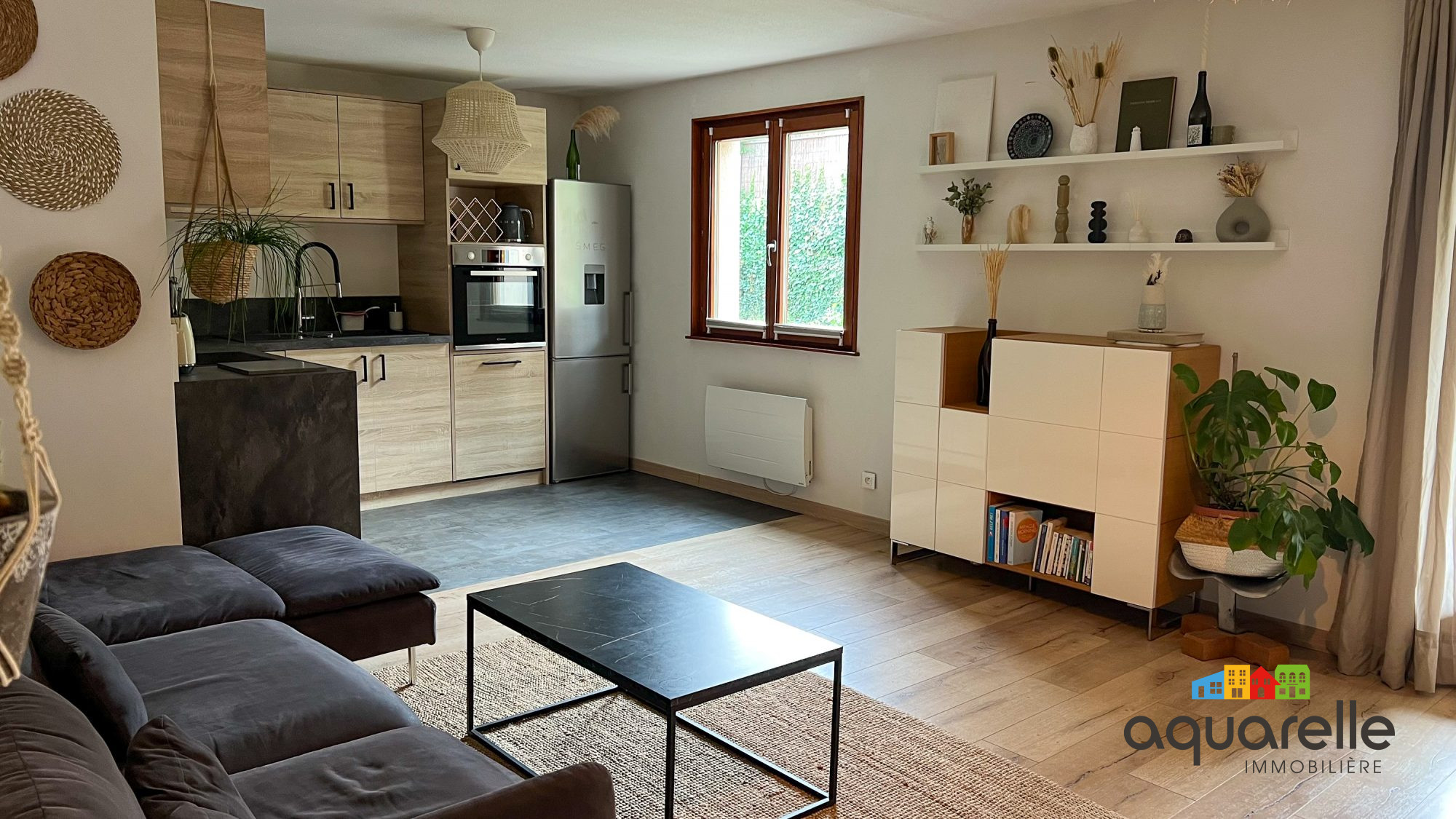 ...Il dispose d'une entrée, une pièce de vie de 30m² avec séjour et cuisine équipée ouverte et accès...