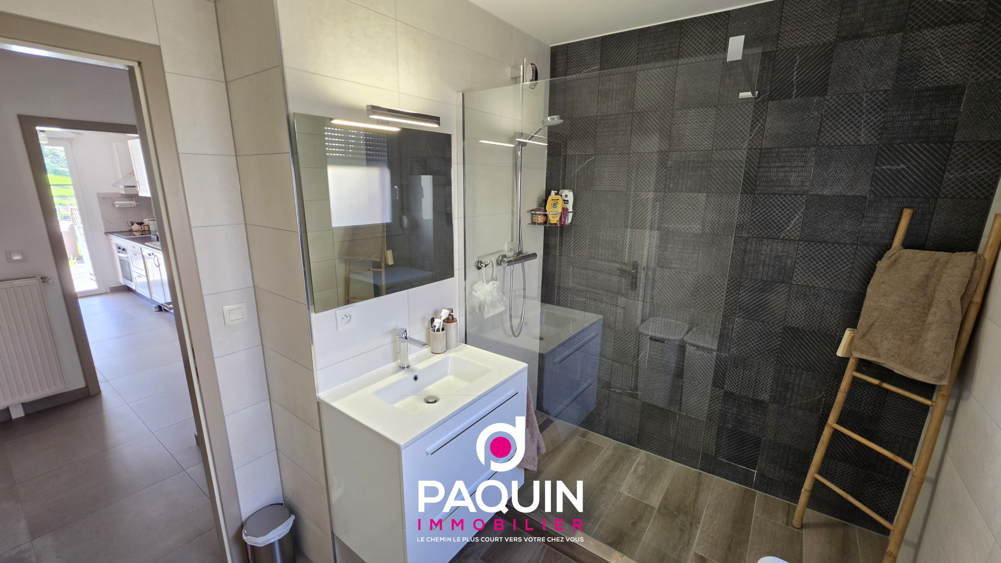 ...55m2 comprenant une entrée, une pièce de vie ouverte sur la cuisine équipée (33...