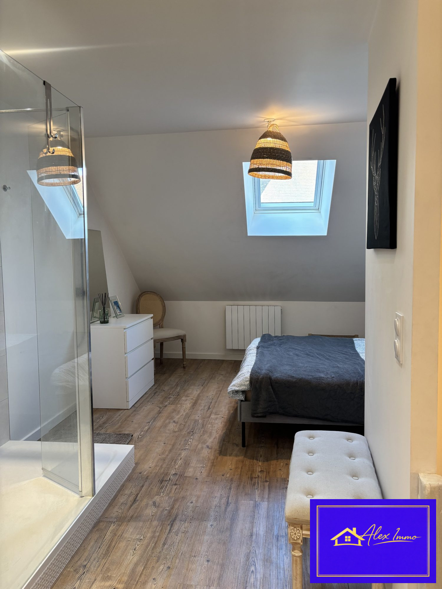 ... avec vue sur un parc arboré et sa cuisine américaine équipée, une chambre avec placard (12.3 m²) et...