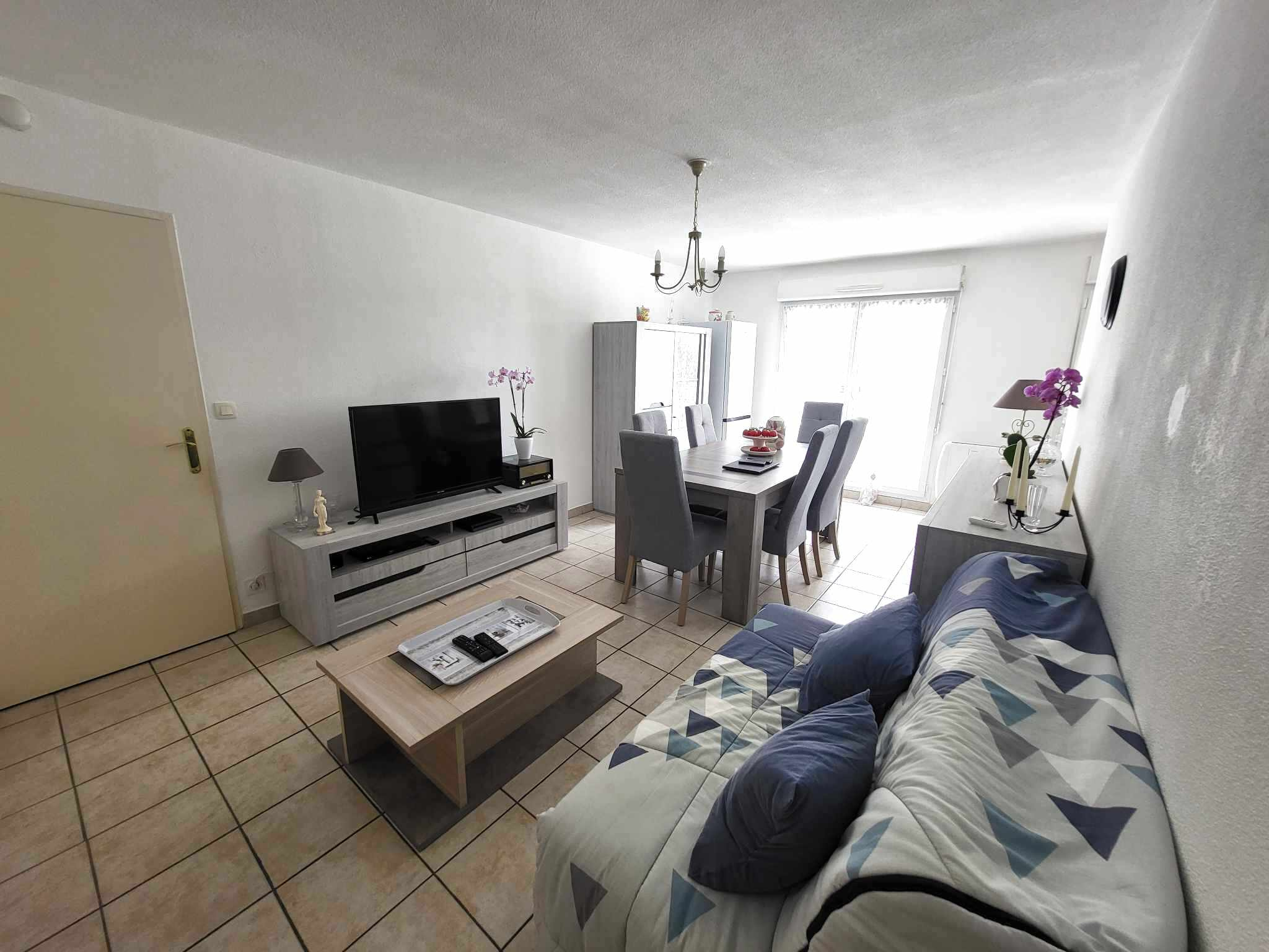 ...Une entrée desservant un séjour/salon donnant sur un balcon plein SUD, une cuisine aménagée...
