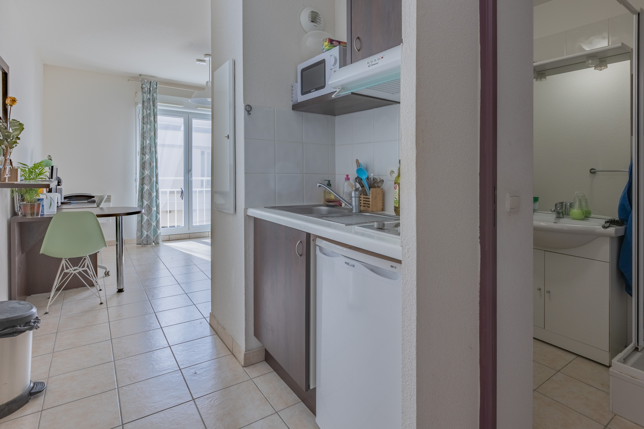 ...Découvrez ce studio entièrement rénové avec goût, offrant une salle de bain moderne et une...