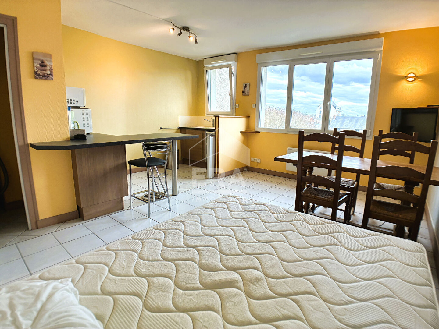... et équipée récente, 1 chambre avec placards, salle de bains, WC indépendant.