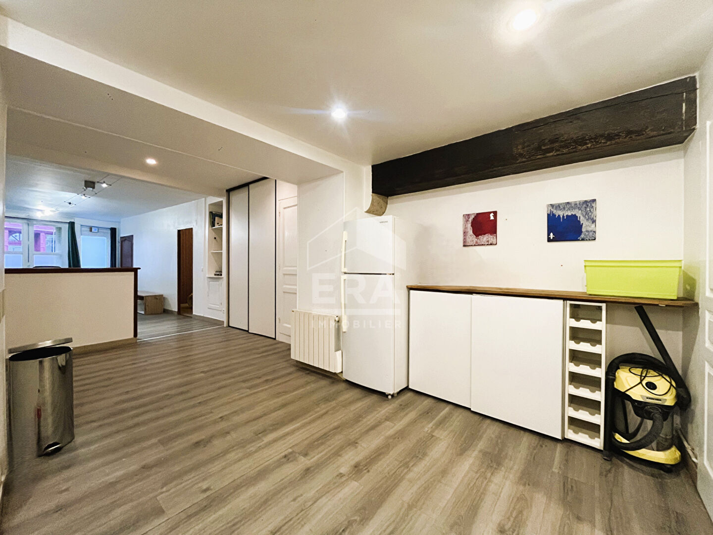 ...Il bénéficie d'une entrée avec placards, d'un séjour avec espace bibliothèque donnant sur la...
