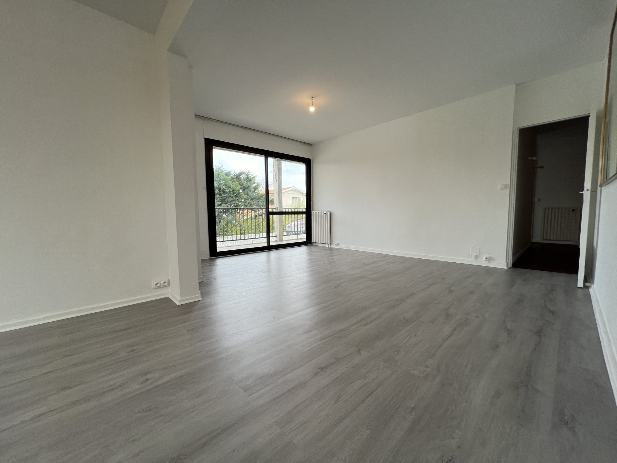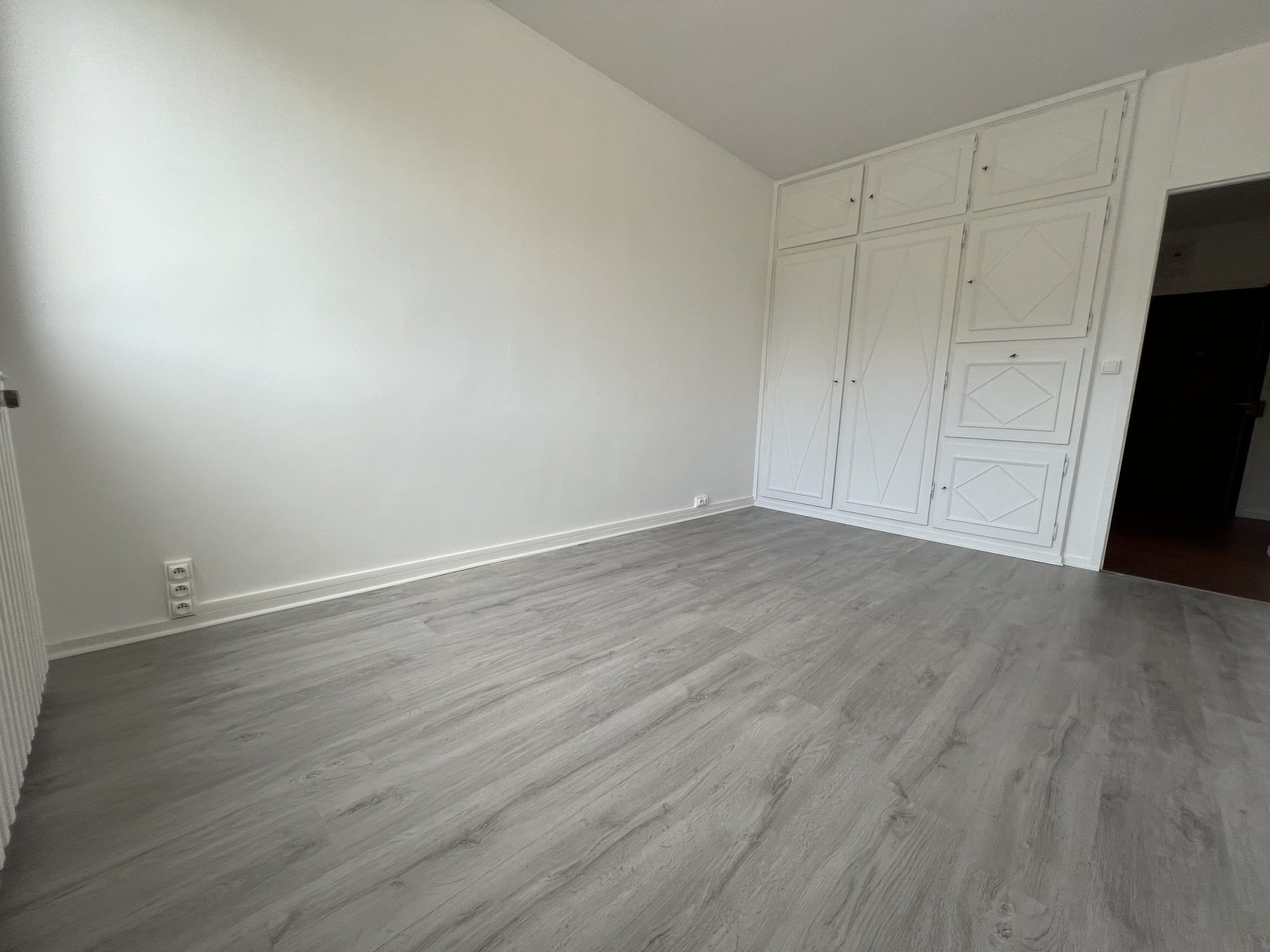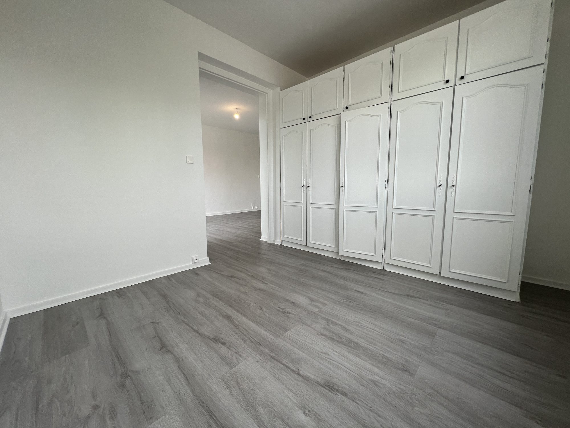 ... avec placard, une cuisine équipée ouverte sur un séjour donnant sur un balcon, un salon s'ouvrant s...
