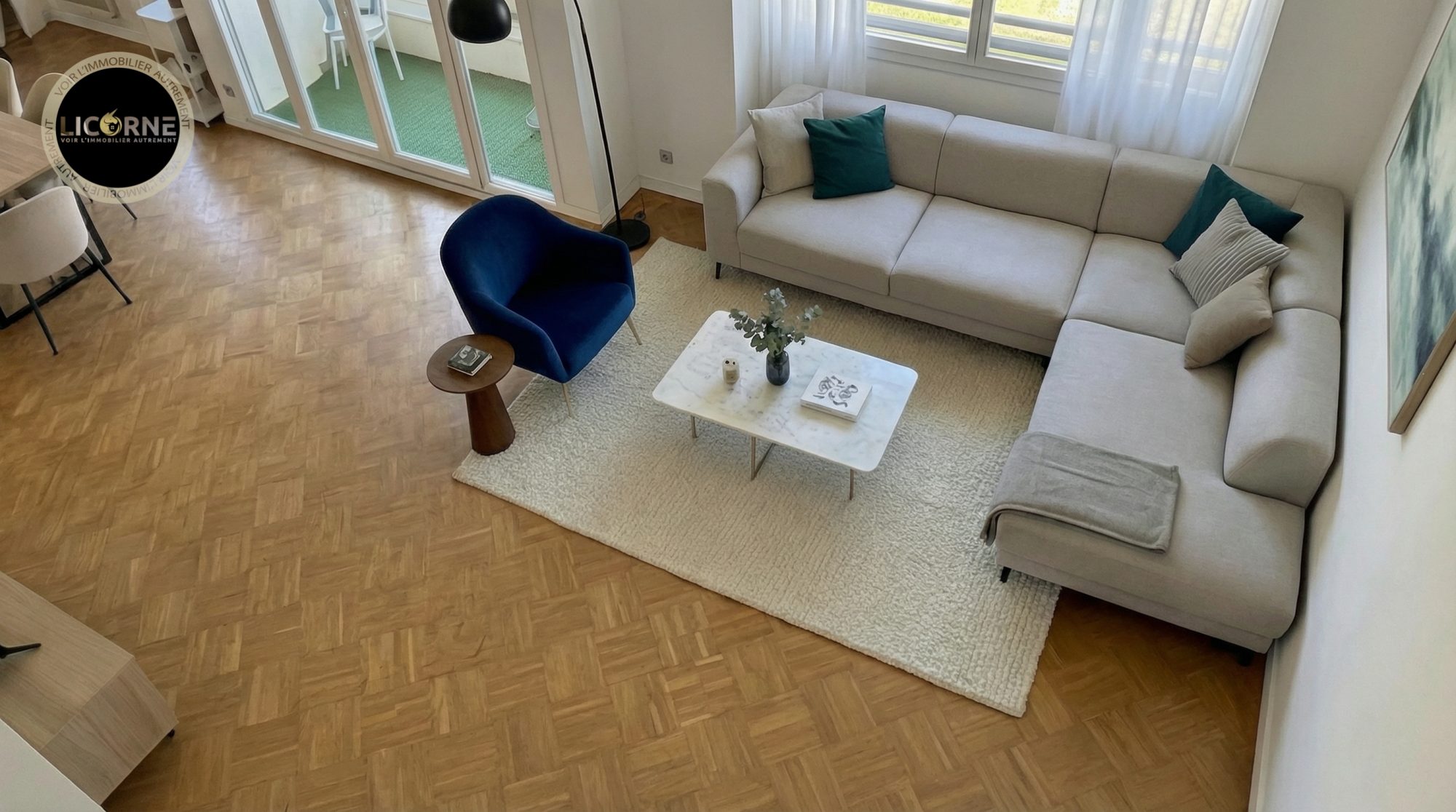 ...Il dispose d'un séjour de 19,68 m2, balcon exposé Ouest, salle à manger de 13,31 m2 expo Sud...