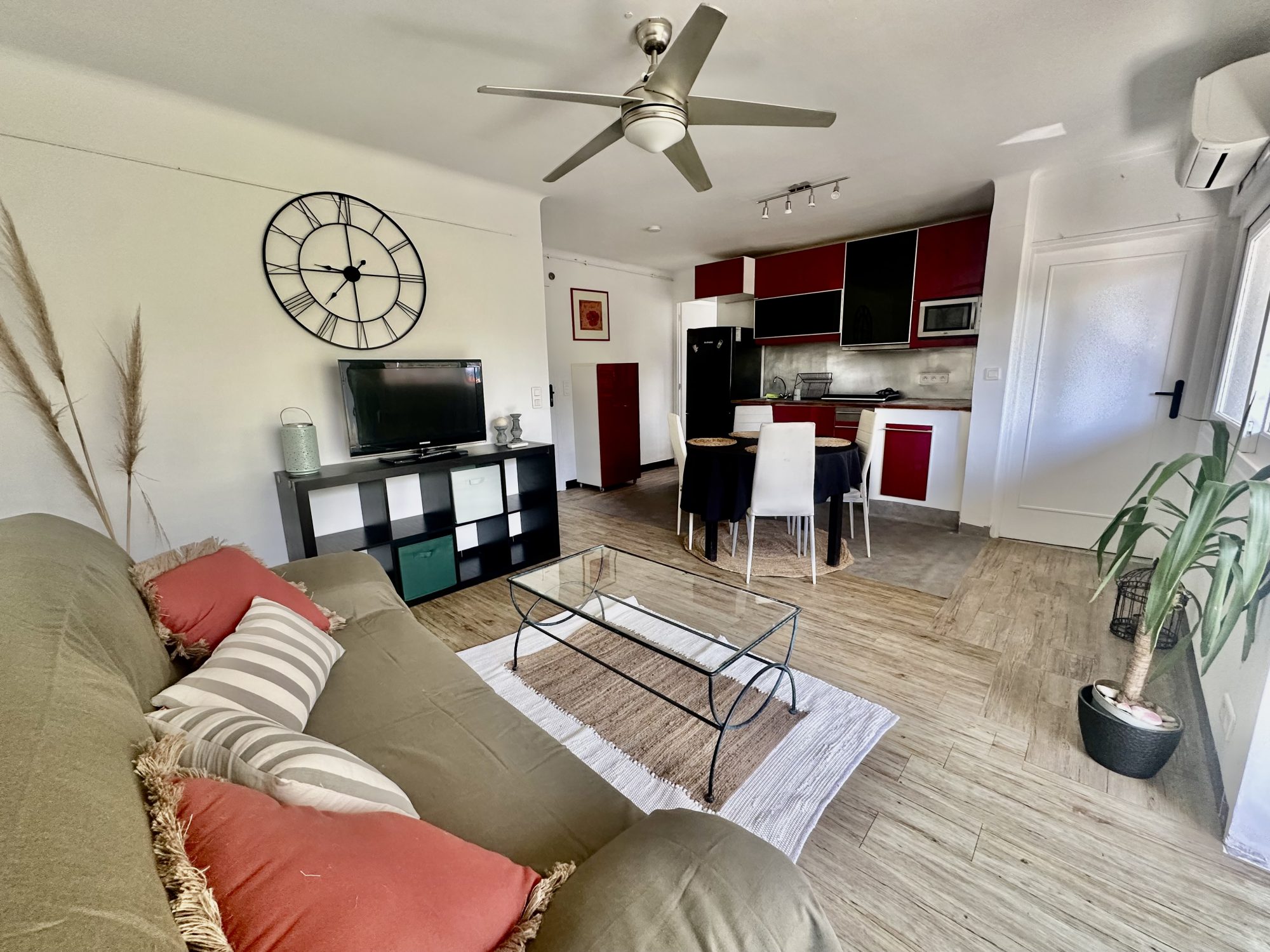 ...Rénové avec soin, ce T2 en rez-de-chaussée offre un espace lumineux, climatisé, entièrement...