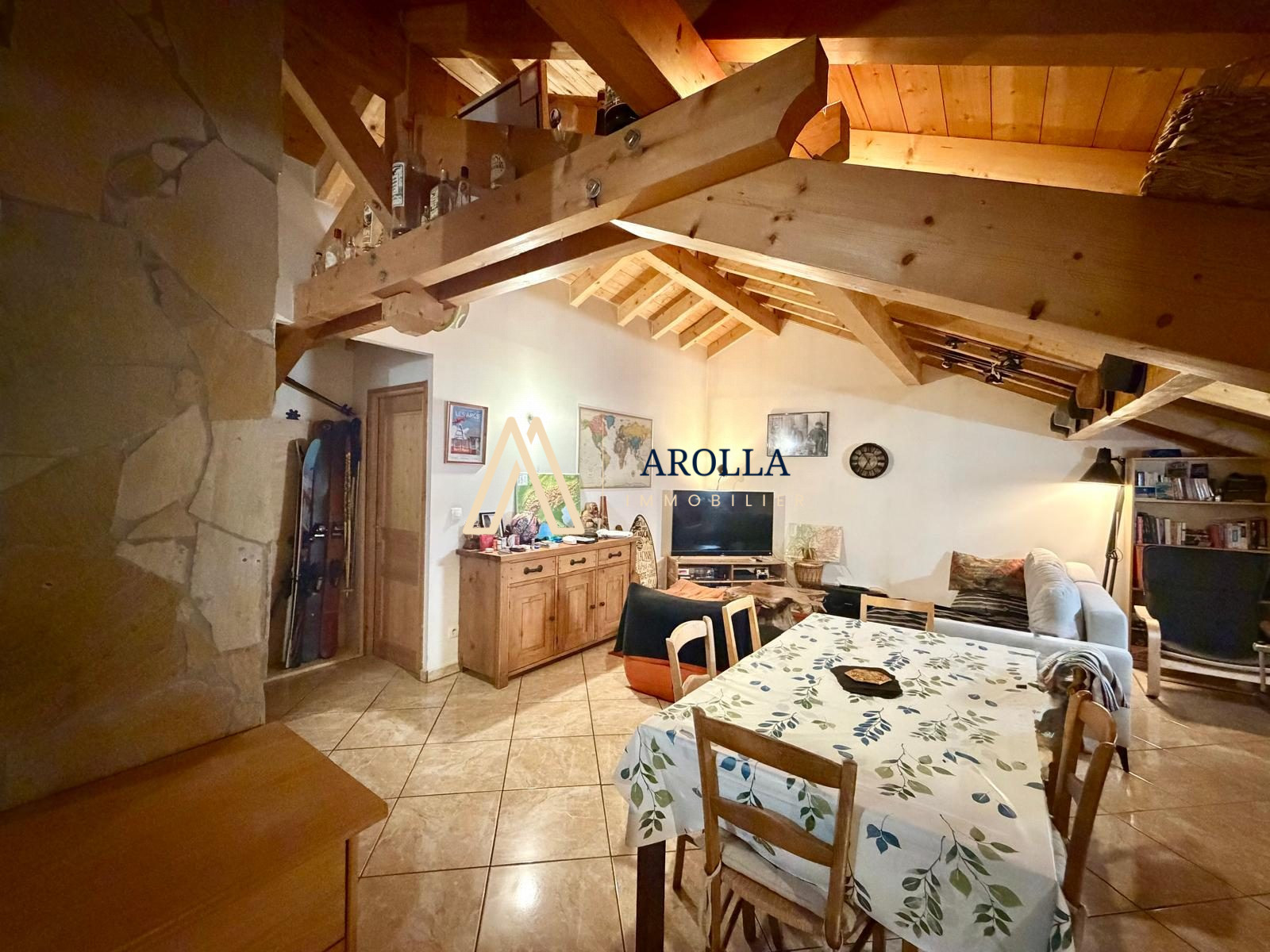 ...L'espace de vie s'articule autour d'une cheminée traditionnelle, apportant une atmosphère...