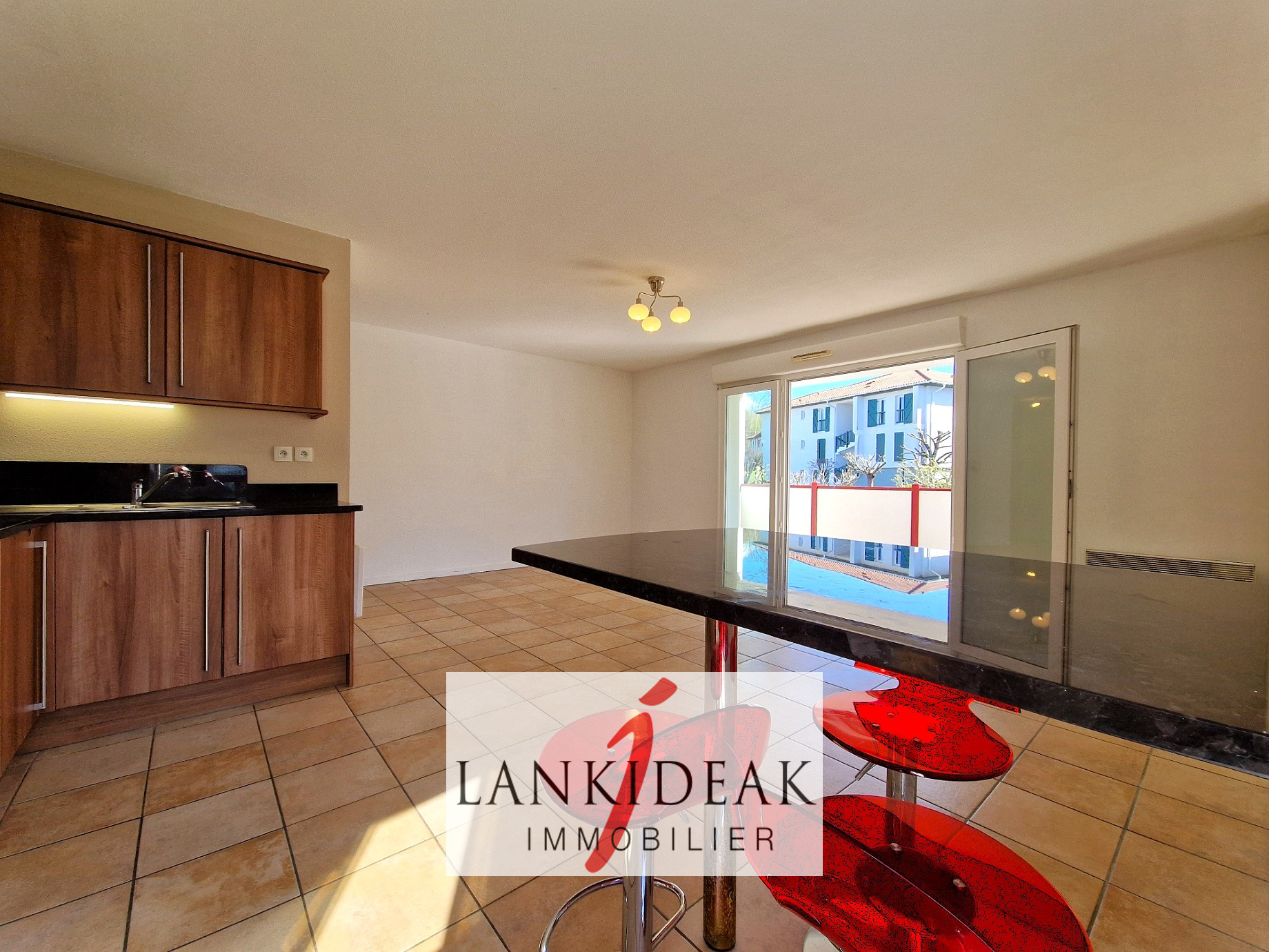 ...T2 au rez-de-chaussée , entrée, séjour avec sa cuisine américaine ouvrant sur terrasse, chambre...