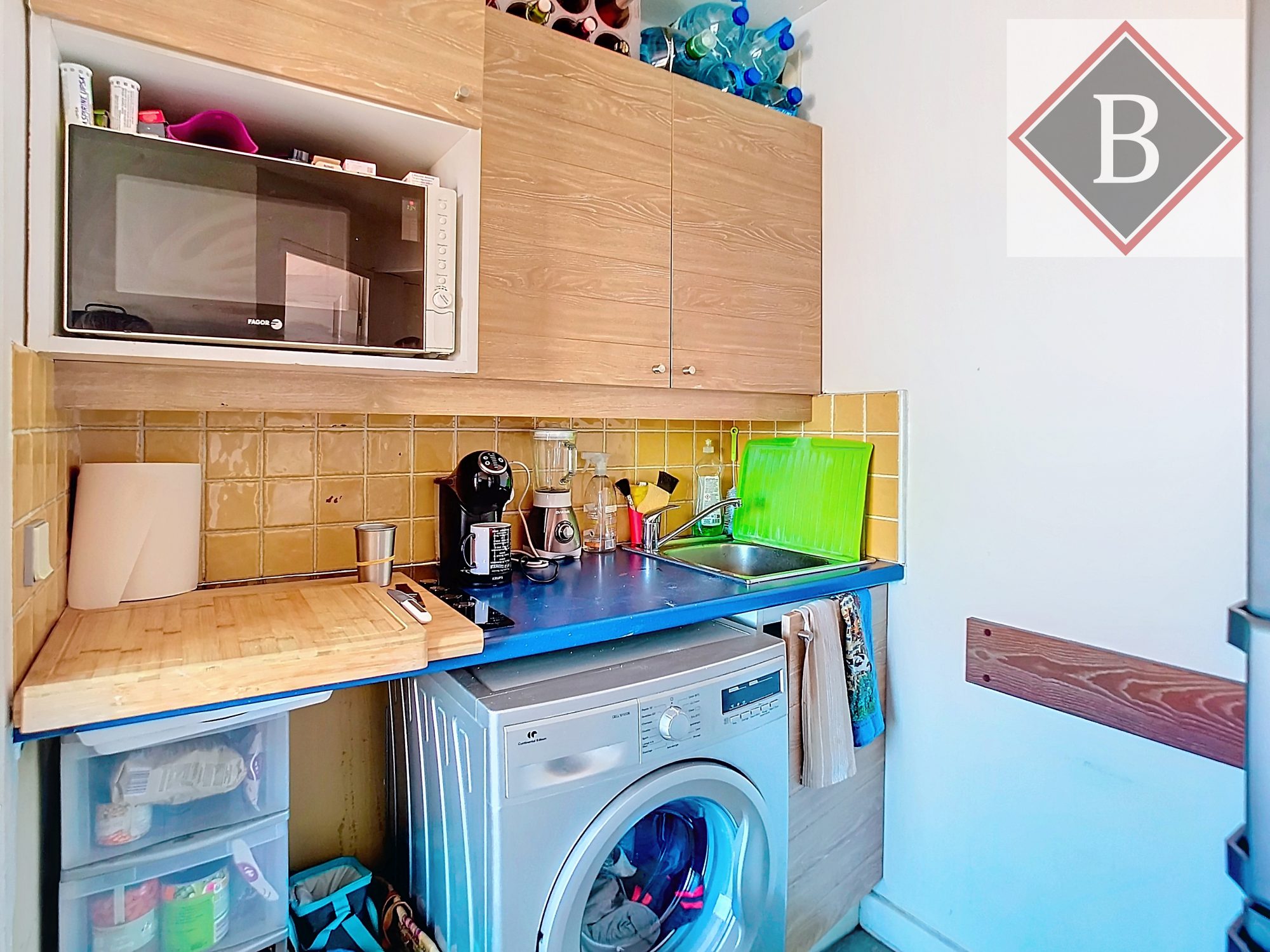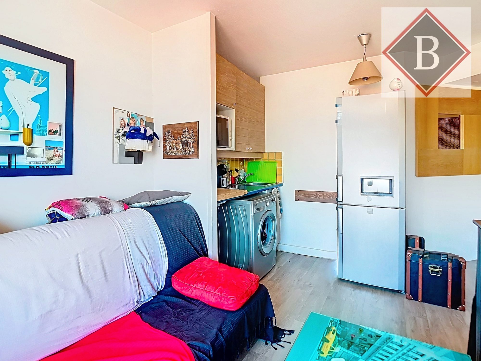 ...Il se compose d'un séjour lumineux avec cuisine ouverte sur mesure donnant accès à un balcon,...