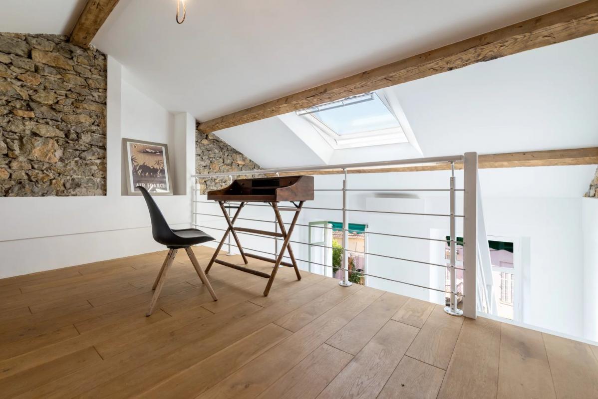 ... de détente. Une mezzanine complète cet espace et peut aisément être aménagée en coin bureau. Au ...