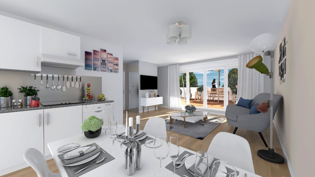 ...Il dispose d'un séjour avec cuisine ouverte, ouvert sur une terrasse suivie d'un jardinet...