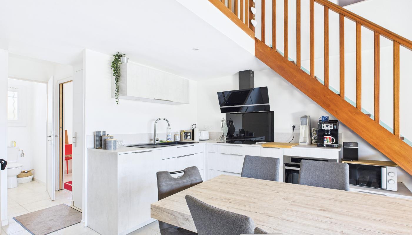... une chambre en mezzanine, également équipée de sa salle d'eau, complète l'espace nuit.