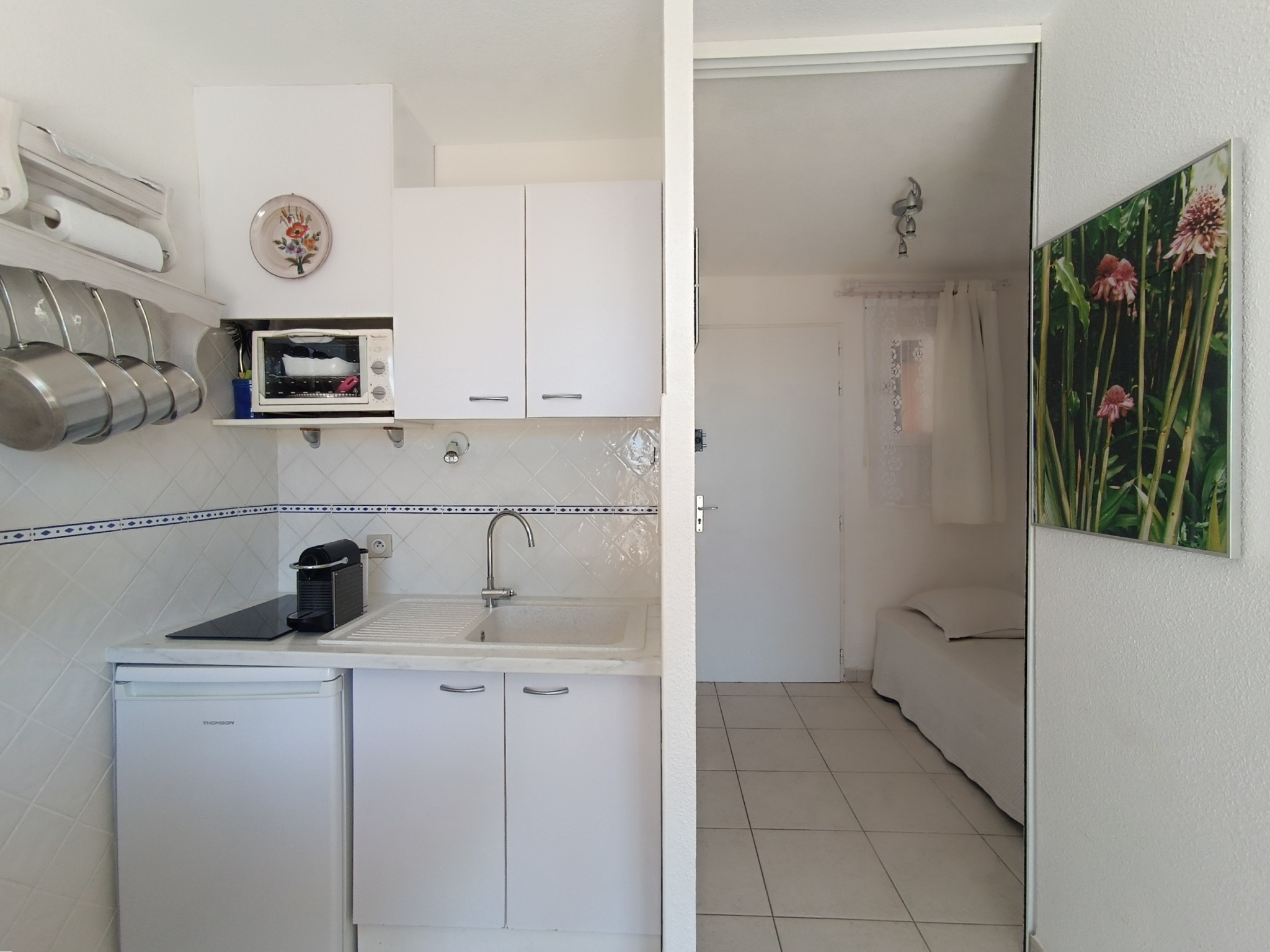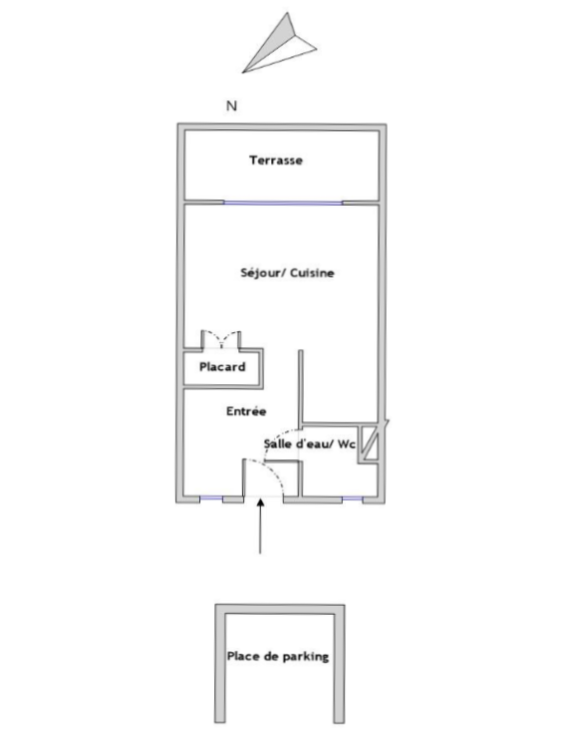 ...Il se compose d'une entrée avec placard, une salle de bains avec WC, une kitchenette ouverte sur...