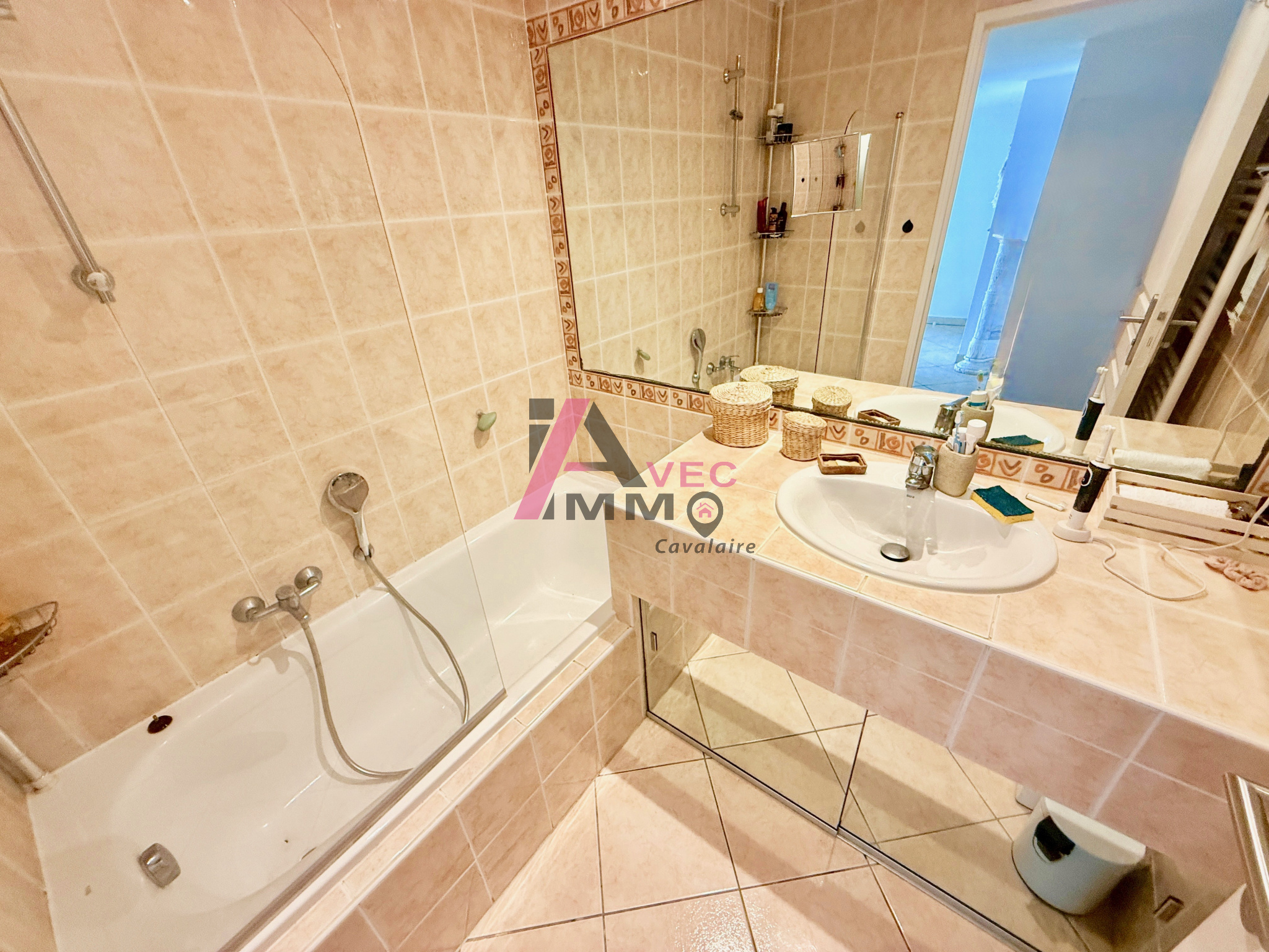 ... un vaste séjour lumineux, deux chambres avec placards, salle de bains, WC séparés. Piscine dans la ...