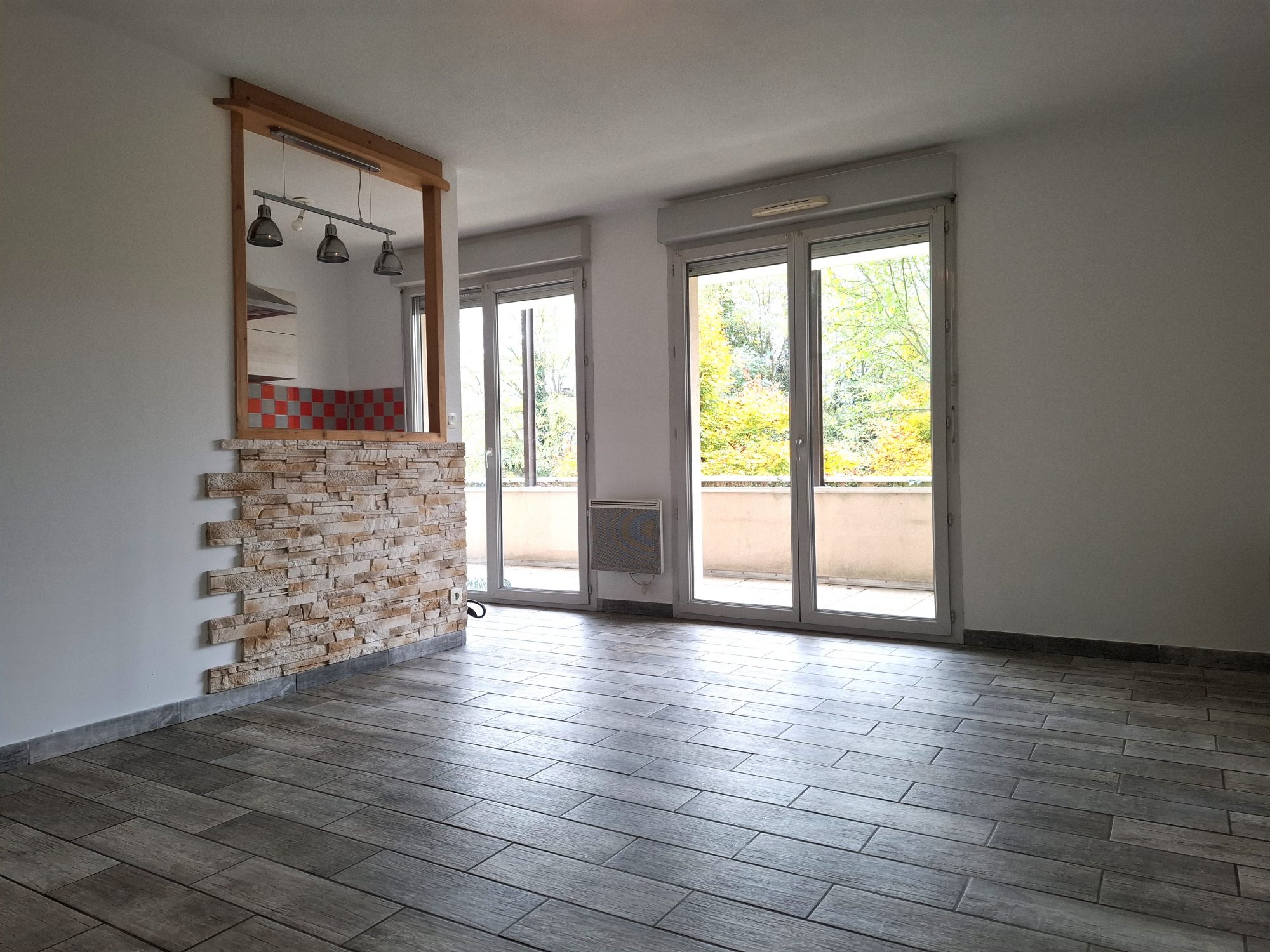 ... avec placard, une cuisine équipée ouverte sur un salon lumineux de 23?m² donnant sur un balcon, une...
