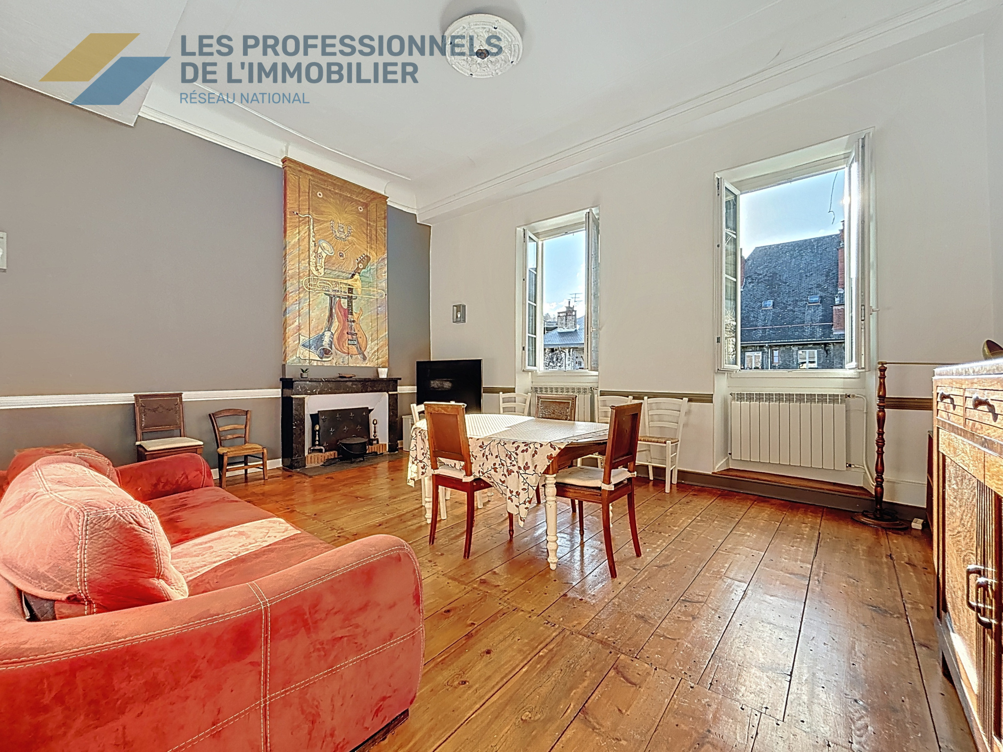 ... d'une cuisine récente et équipée semi-ouverte sur le chaleureux séjour avantagé d'une cheminée.