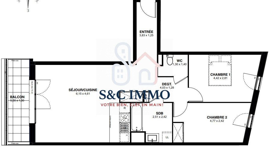 ... salle de bains moderne. Un WC indépendant assure votre intimité. Le standing de cet appartement est...
