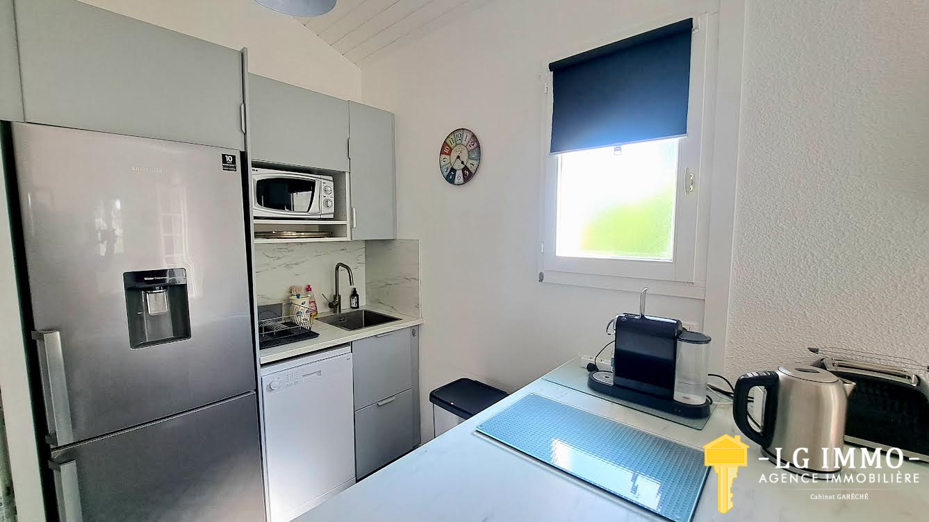 ...Il comporte aussi une cuisine ouverte récemment équipée en électroménager , une chambre au...