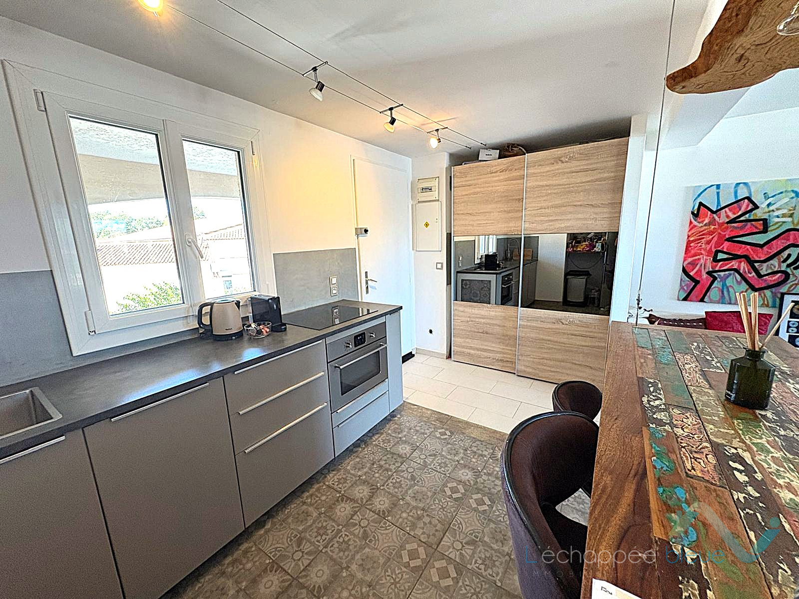 ... cuisine ouverte moderne et entièrement équipée (four, plaque induction, hotte, réfrigérateur, lave-...