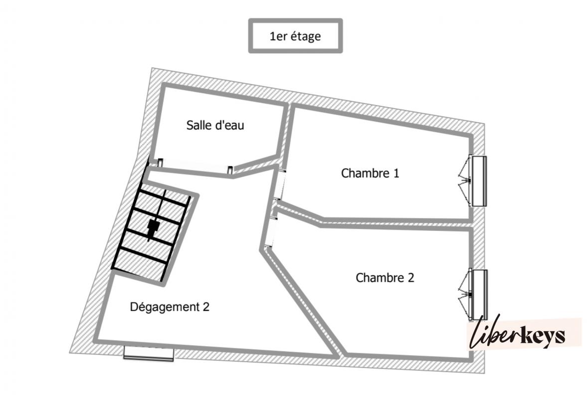 ...A l'étage, il y a une salle de bain avec WC et deux chambres...