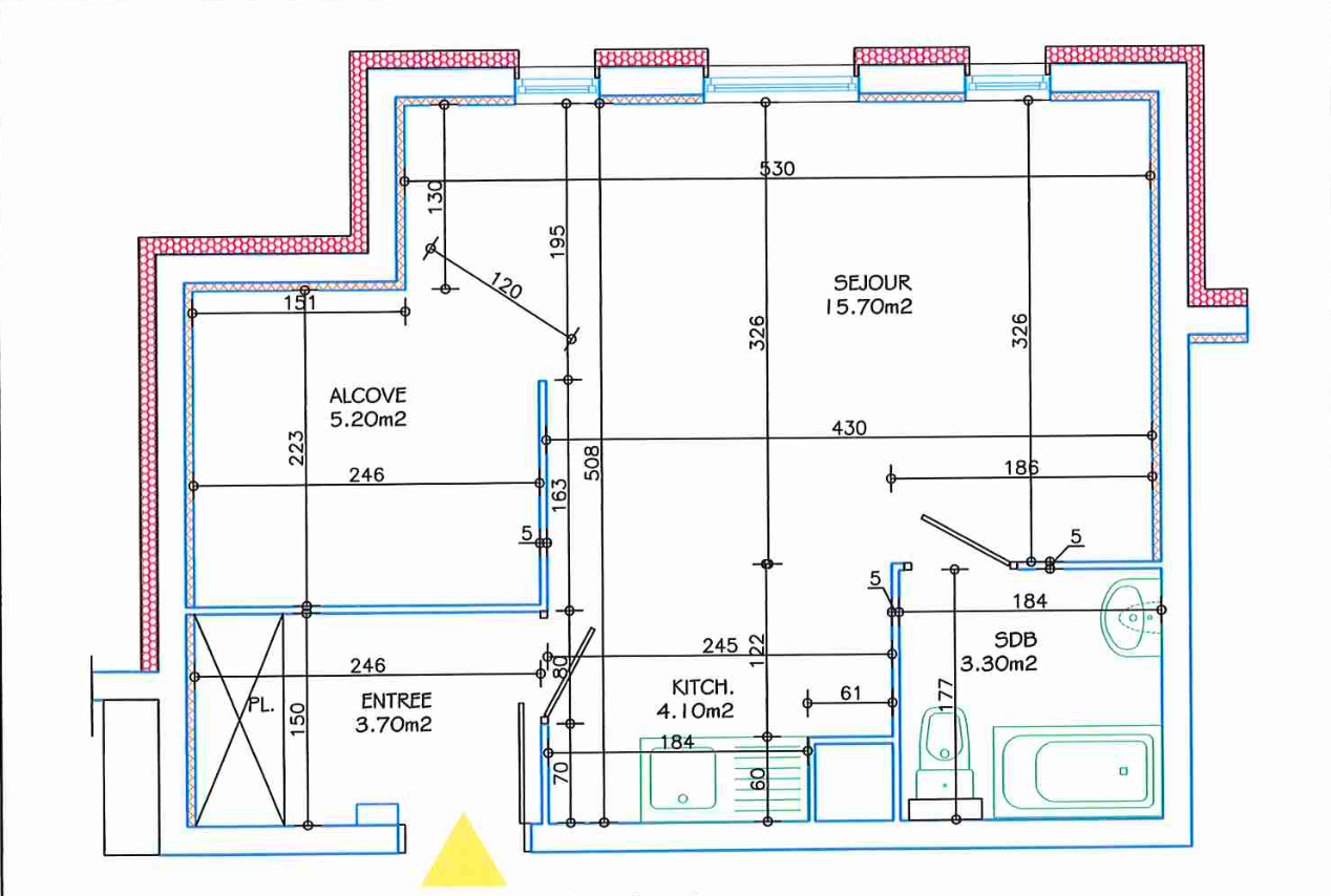 ...Il comprenant une entrée, cuisine, séjour, chambre, placard, dégagement, salle de bains, WC...