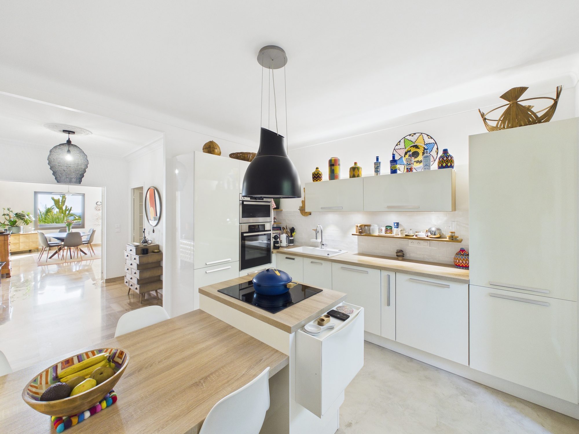 ... de 13 m2 avec vue mer, d'une cuisine aménagée et équipée avec buanderie, de trois chambres, d'un sa...