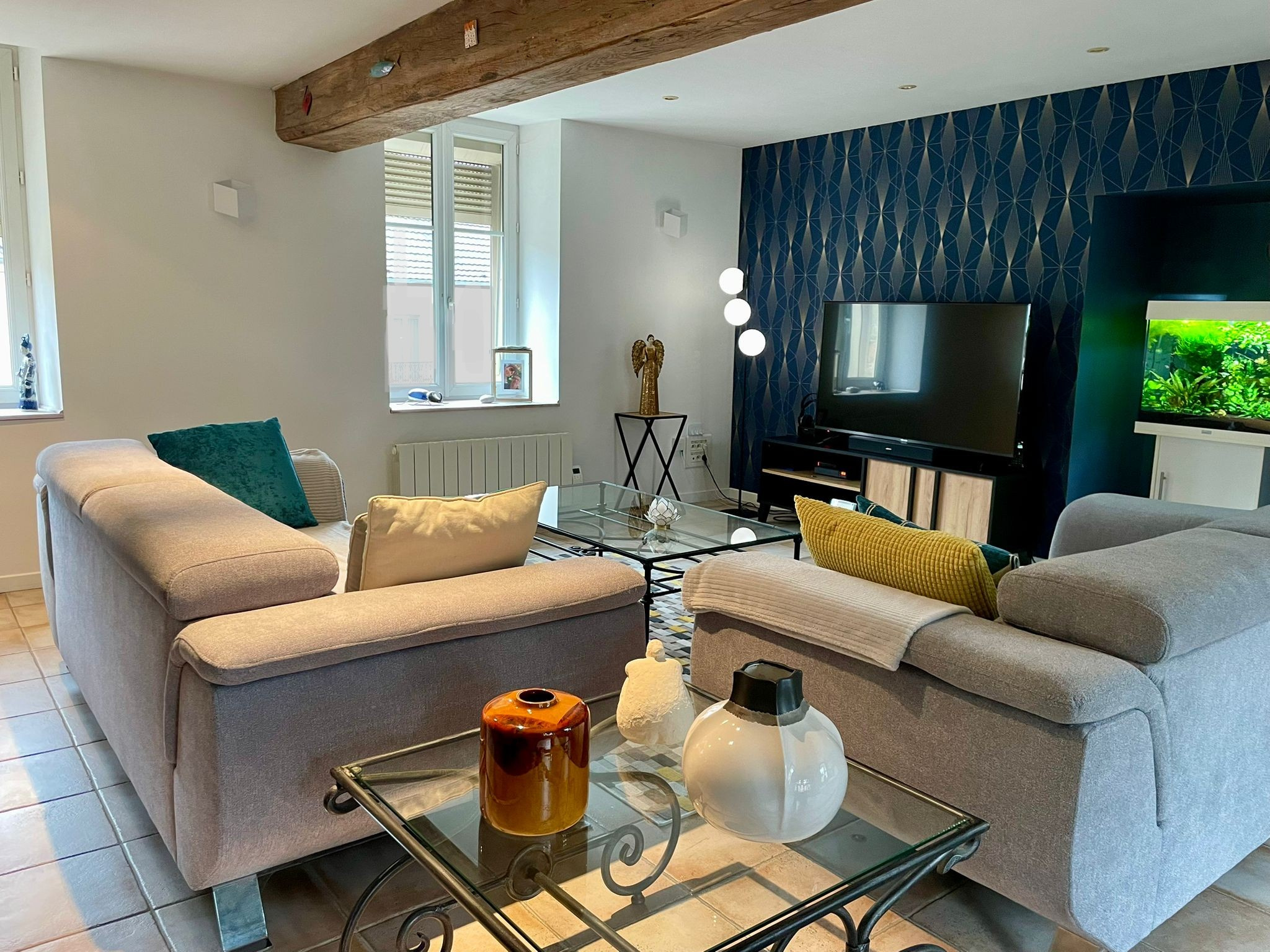 ... : une entrée, cuisine équipée, séjour, deux chambres, SDB.