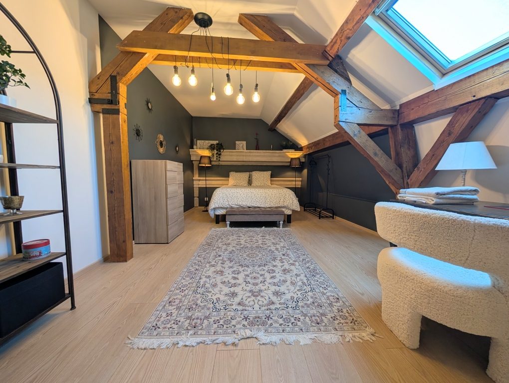 ... une belle mezzanine, deux grandes chambres et une salle d'eau.