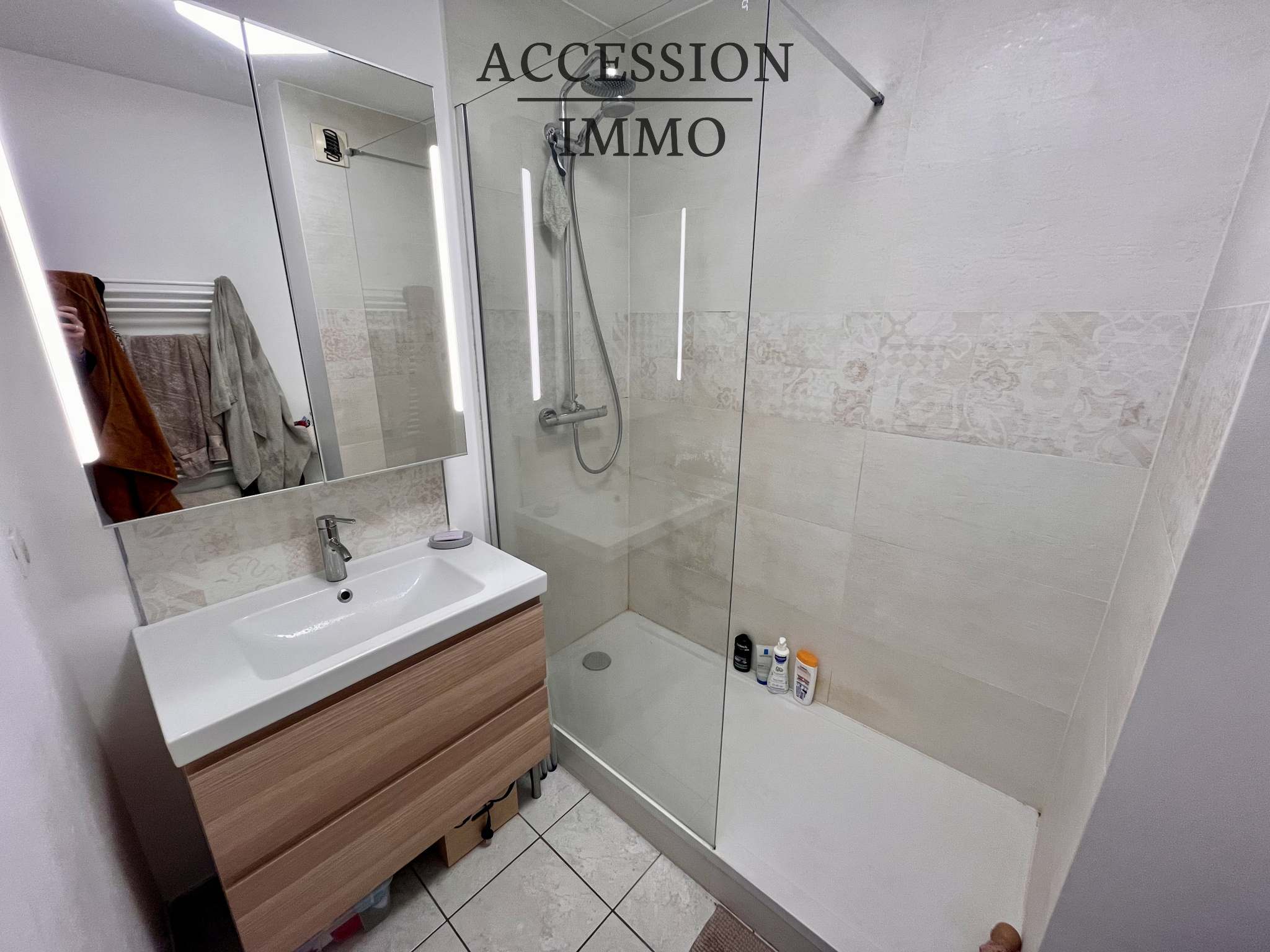 ...L'appartement est composé : d'une entrée avec placard, un salon /salle à manger /cuisine ouverte...