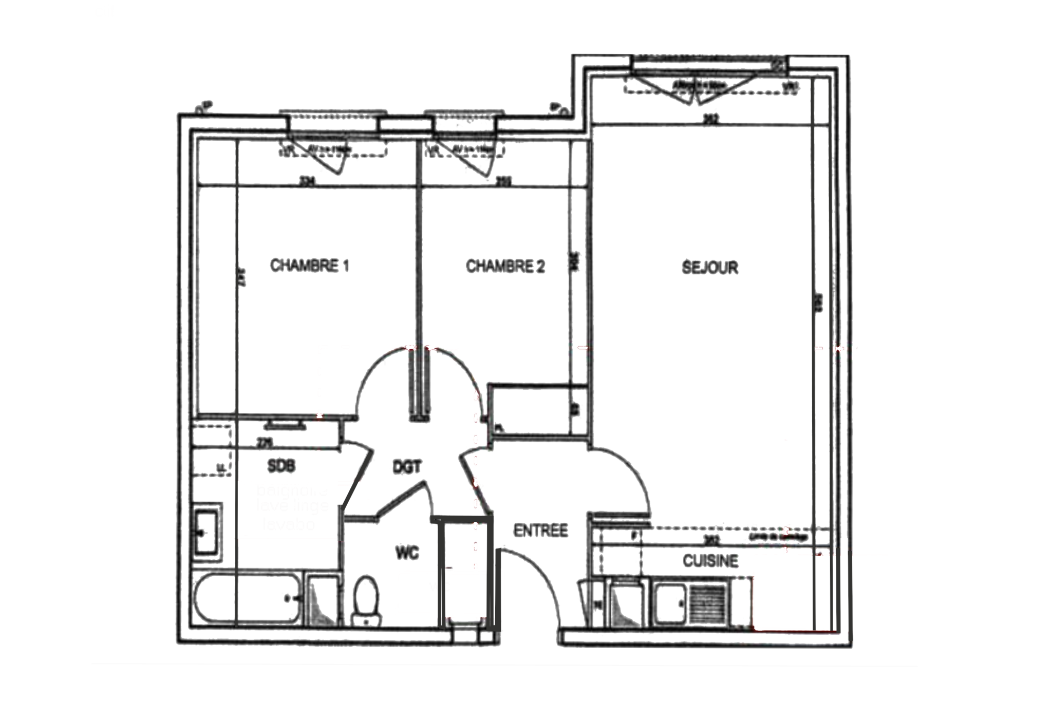 ...Le bien de compose de : 3 chambres , 1 salle de bain , 1 salle d'eau , 2 WC , 2 balcons , avec...