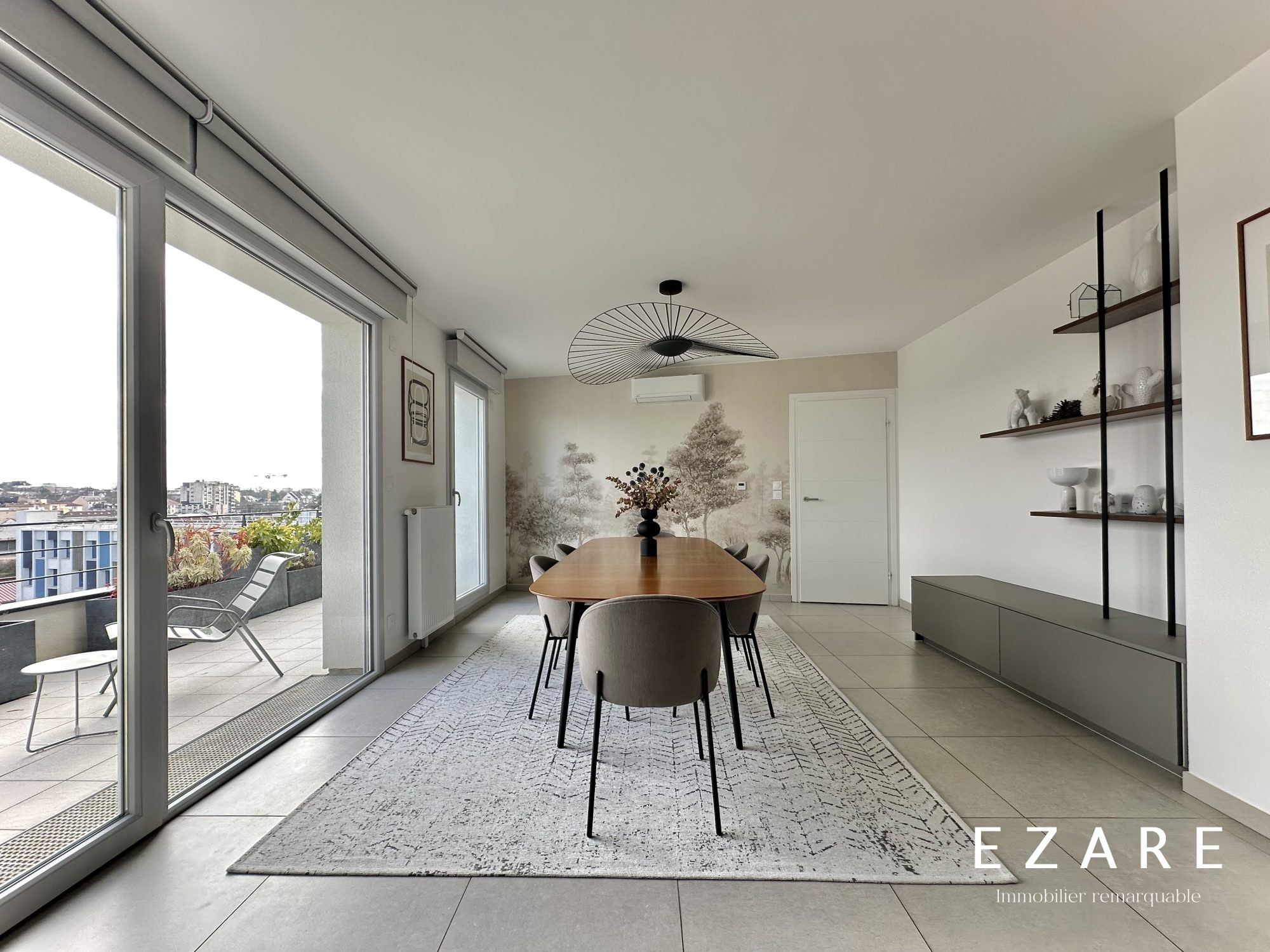 ... espace s'ouvre naturellement sur une terrasse de 13 m² offrant une vue dégagée.