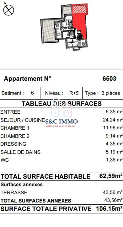 ... d'une résidence moderne et élégante. Avec une surface habitable de 62.59 m², cet appartement allie ...