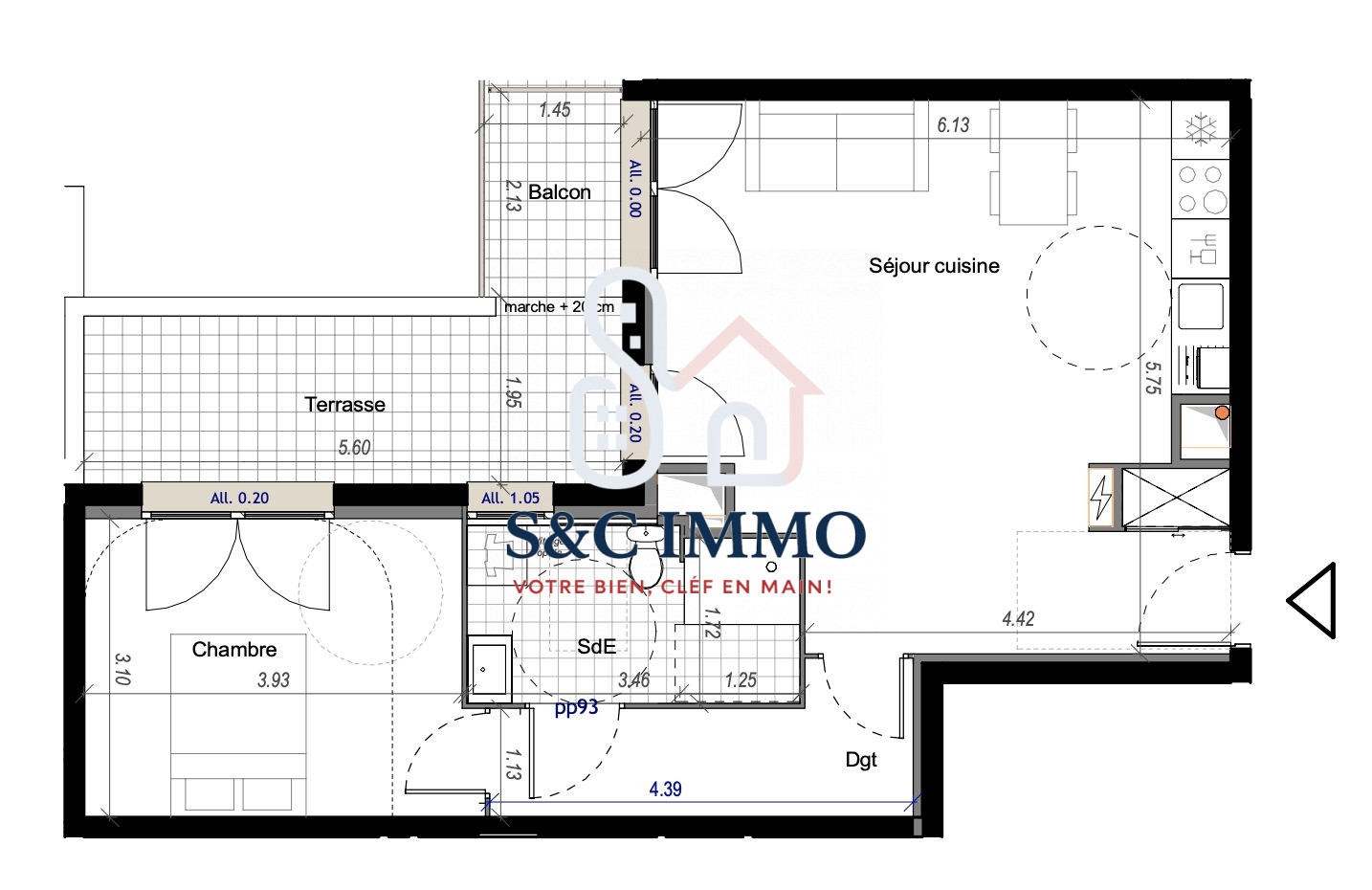 ...Il comprend une entrée, une pièce à vivre, un coin cuisine, une salle d'eau et des WC...