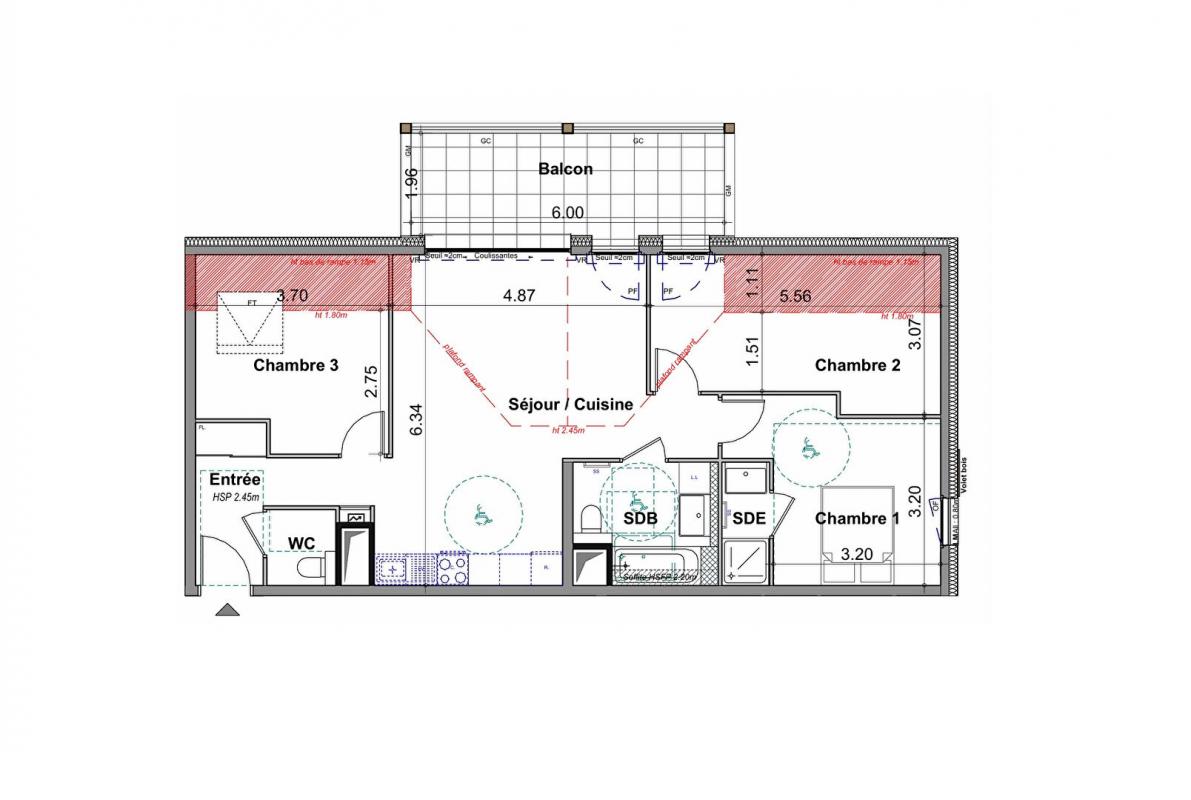...Appartement de type 3 de plus de 56m², avec balcon de 10 m² et cellier...