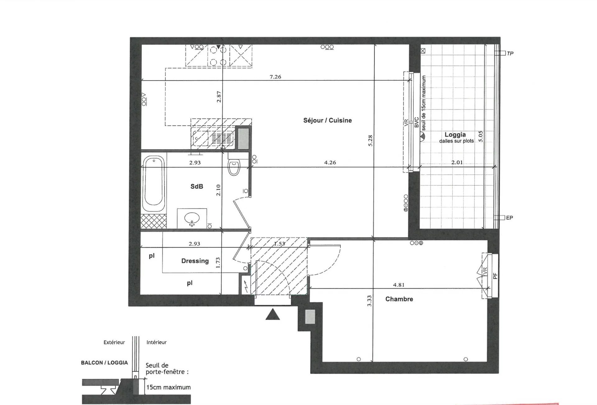 ...Cet appartement se compose d'une entrée desservant une grande chambre à coucher qui s'ouvre sur...