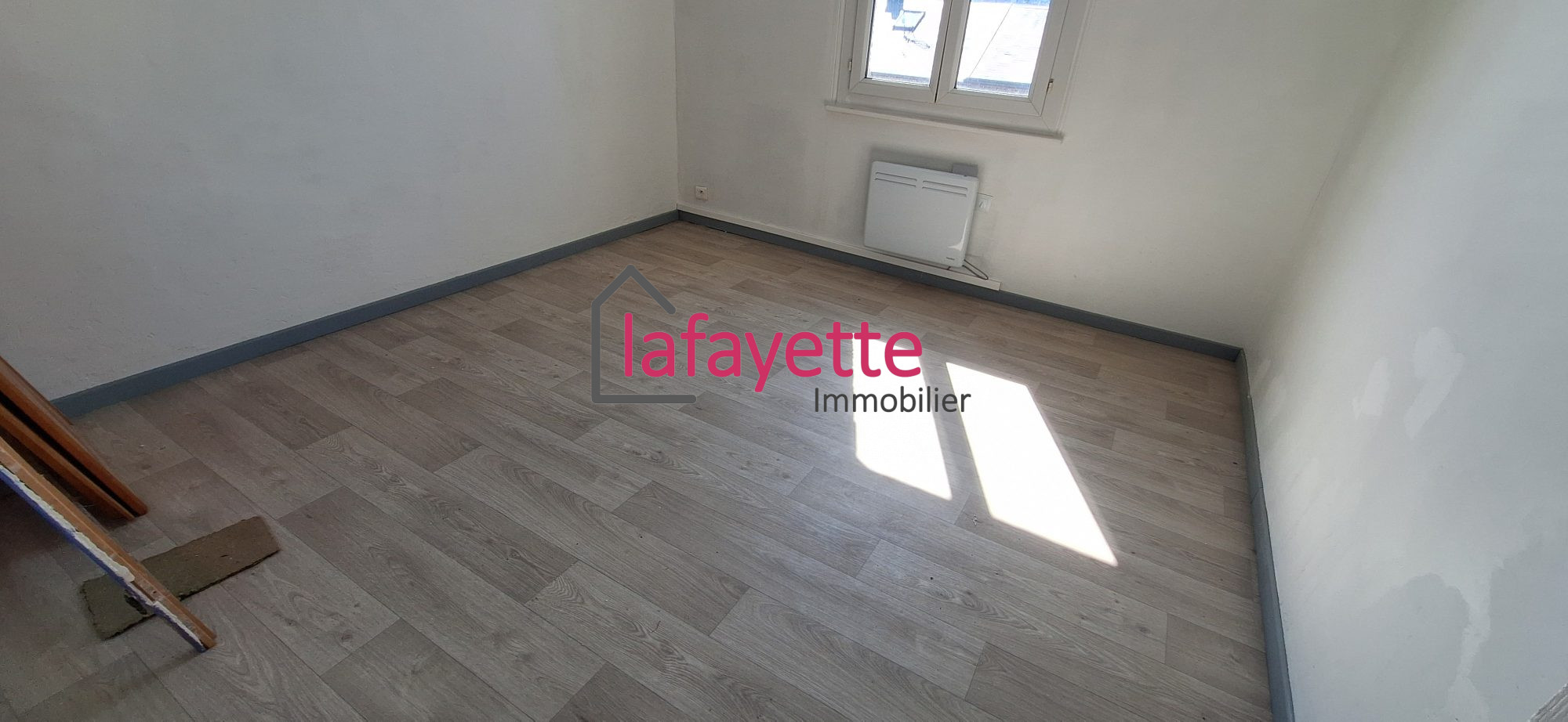 ...Il offre placards d'entrée, pièce de vie d'environ 37m² avec coin cuisine, couloir desservant...