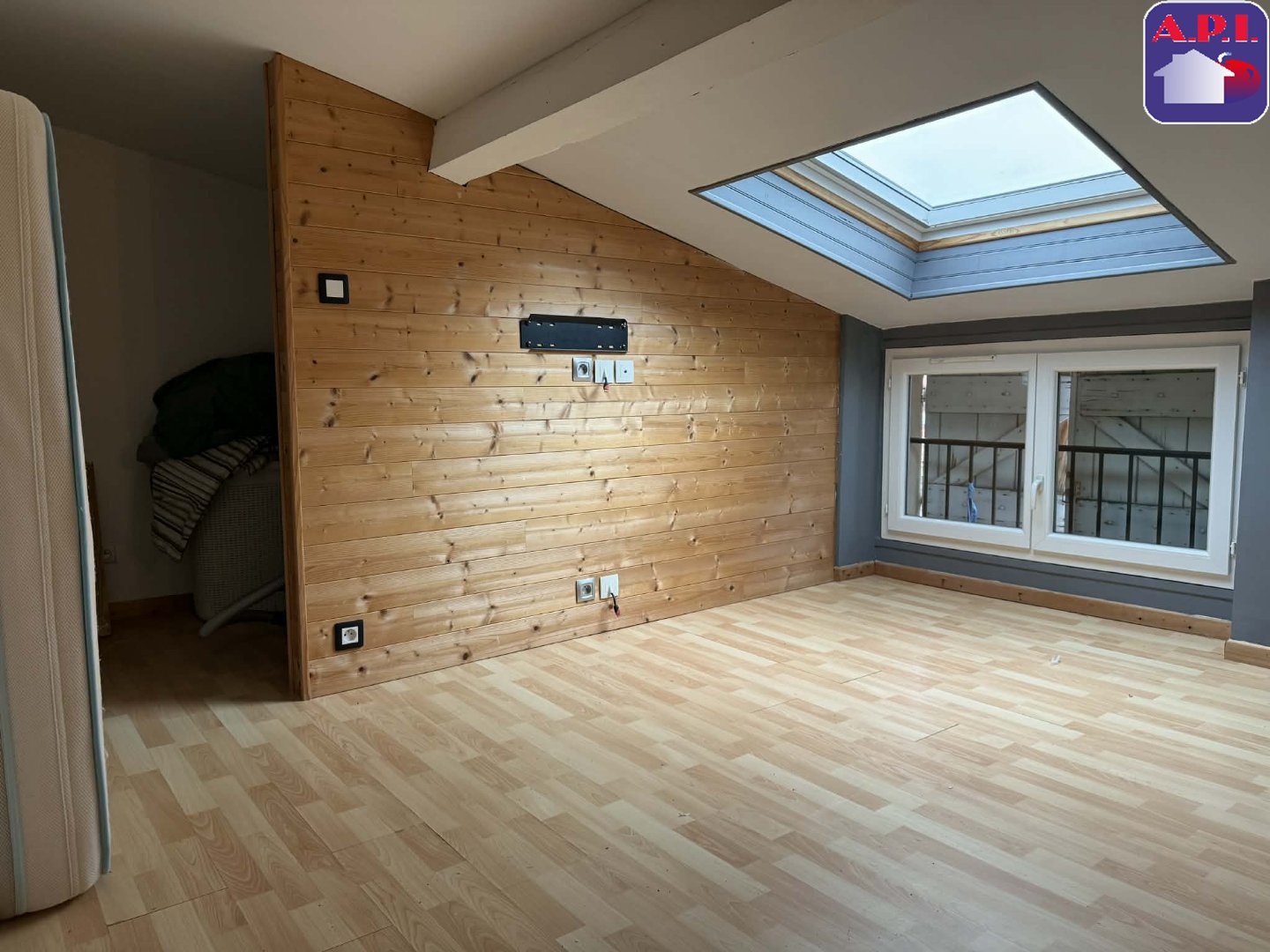 ... dégagement avec placard, une chambre et une salle d'eau avec wc. Logement équipé de double vit...