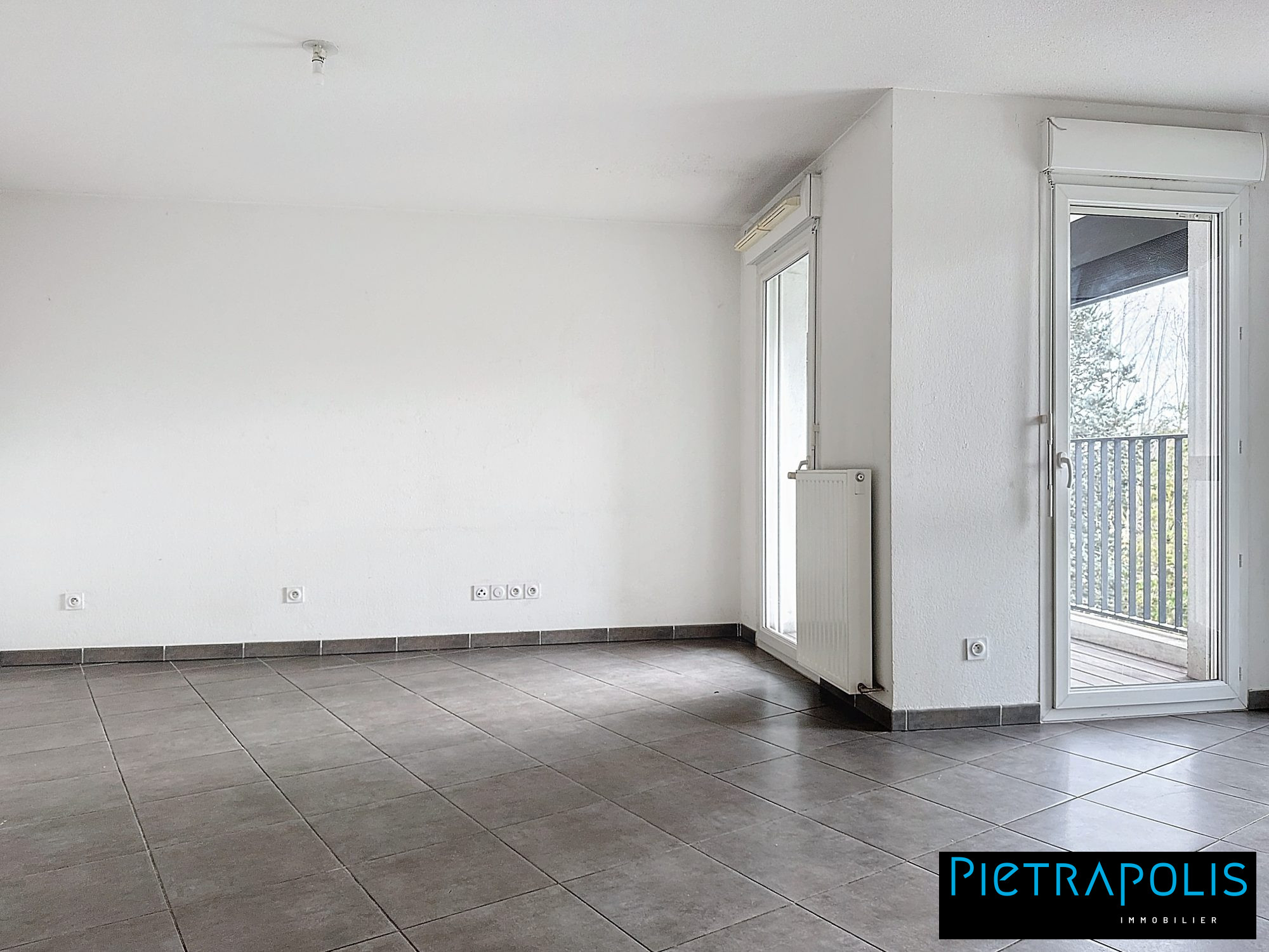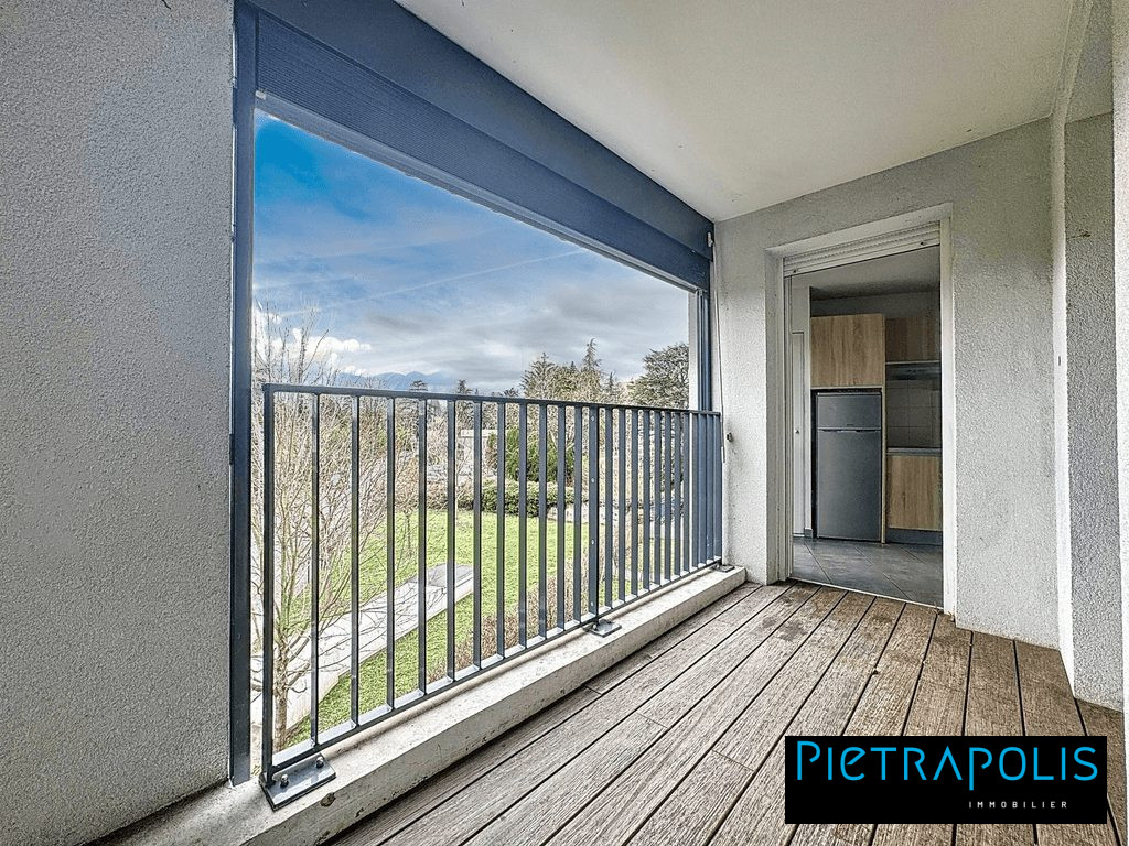 ...Une grande pièce de vie de 27m2 avec son balcon de 5m2 et sa cuisine équipée et aménagée...